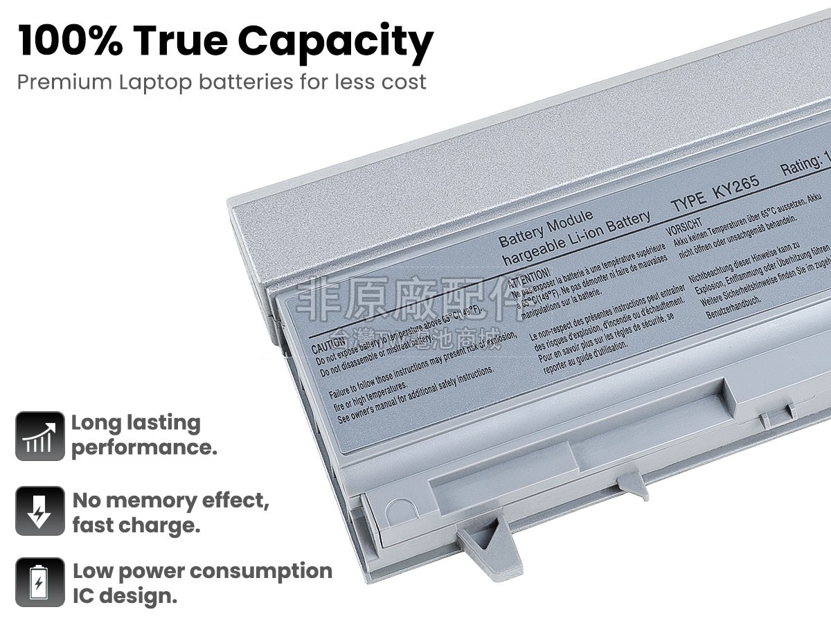 系統穩定,不容忽視!使用美國德州智能IT芯片,保證電池充電更快,對於溫度、電壓、電流的檢測精度正確率更高;電池外殼採用原廠設計方案,100%兼容您的筆電,實現我們的DELL戴爾KY265電池與您的筆電零障礙溝通,讓您用的更放心。