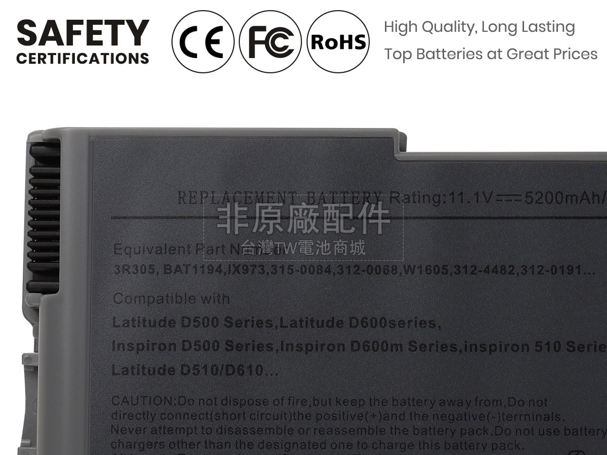 台灣TW電池商城售賣的所有電池均為100%真實容量,我們絕不會在參數上造假。對於製造商提供的每一款電池,我們都會安排技術人員進行參數測試,以確保我們售賣的電池都符合各種認證的要求、100%安全和100%兼容對應的筆記型電腦。極少數情況下,電池參數表上的容量會比電池實物圖上的容量低,這是因為我們檢測時發現製造商給出的電池容量偏高,與電池實際容量不符。於是我們會把電池的實際容量準確地填寫在參數表上,讓顧客直接看到電池的真實容量!這款Dell Latitude 500M電池和原廠有什麼區別?