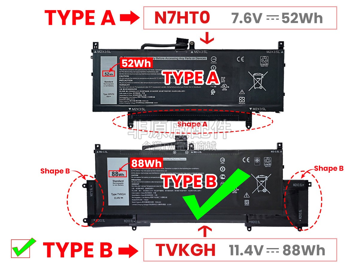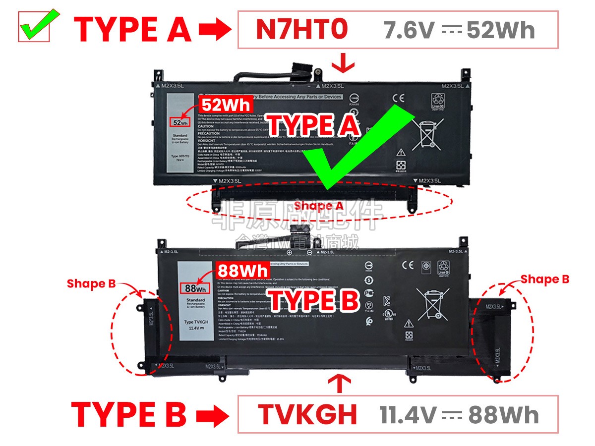 台灣TW電池商城售賣的所有電池均為100%真實容量,我們絕不會在參數上造假。對於製造商提供的每一款電池,我們都會安排技術人員進行參數測試,以確保我們售賣的電池都符合各種認證的要求、100%安全和100%兼容對應的筆記型電腦。極少數情況下,電池參數表上的容量會比電池實物圖上的容量低,這是因為我們檢測時發現製造商給出的電池容量偏高,與電池實際容量不符。於是我們會把電池的實際容量準確地填寫在參數表上,讓顧客直接看到電池的真實容量!這款Dell N7HT0電池和原廠有什麼區別?