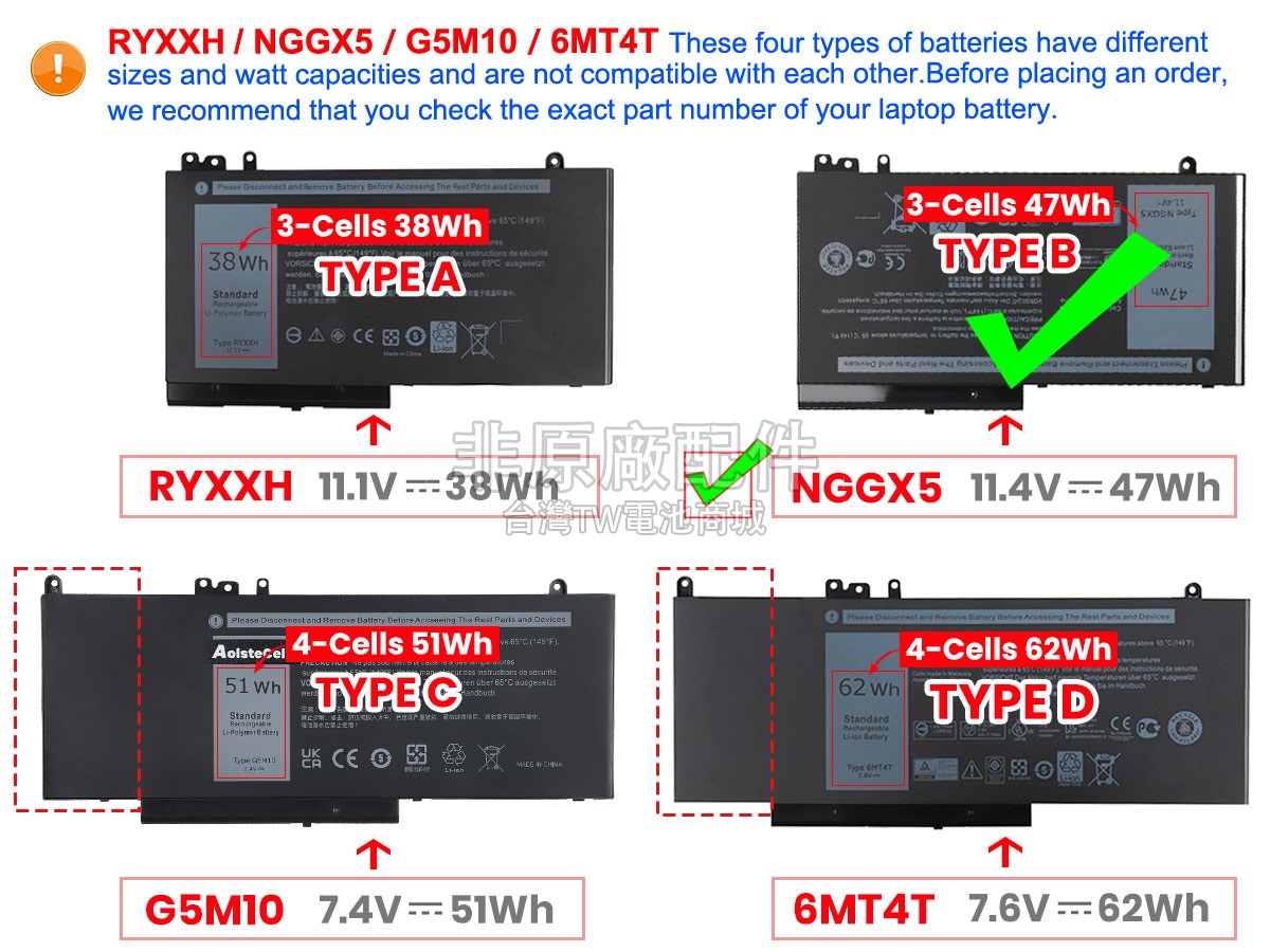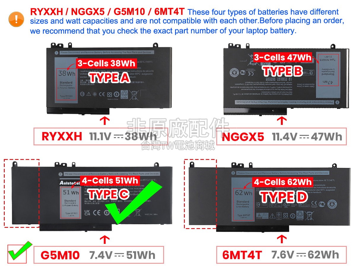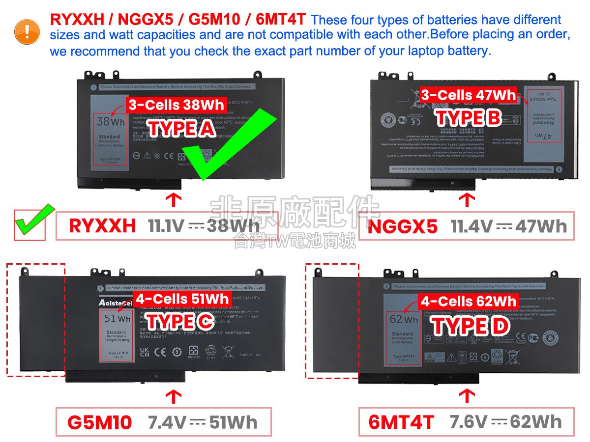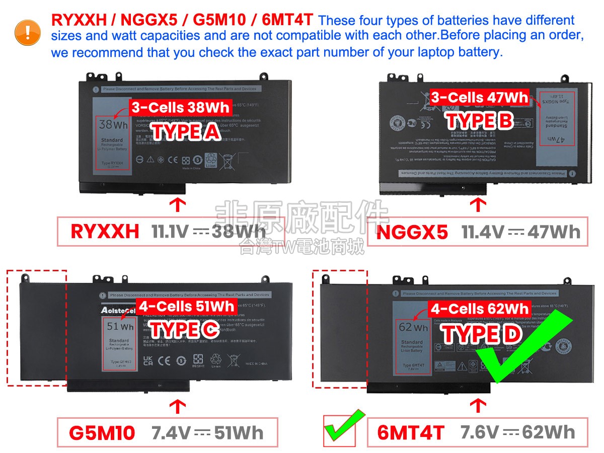台灣TW電池商城售賣的所有電池均為100%真實容量,我們絕不會在參數上造假。對於製造商提供的每一款電池,我們都會安排技術人員進行參數測試,以確保我們售賣的電池都符合各種認證的要求、100%安全和100%兼容對應的筆記型電腦。極少數情況下,電池參數表上的容量會比電池實物圖上的容量低,這是因為我們檢測時發現製造商給出的電池容量偏高,與電池實際容量不符。於是我們會把電池的實際容量準確地填寫在參數表上,讓顧客直接看到電池的真實容量!這款Dell P62G電池和原廠有什麼區別?