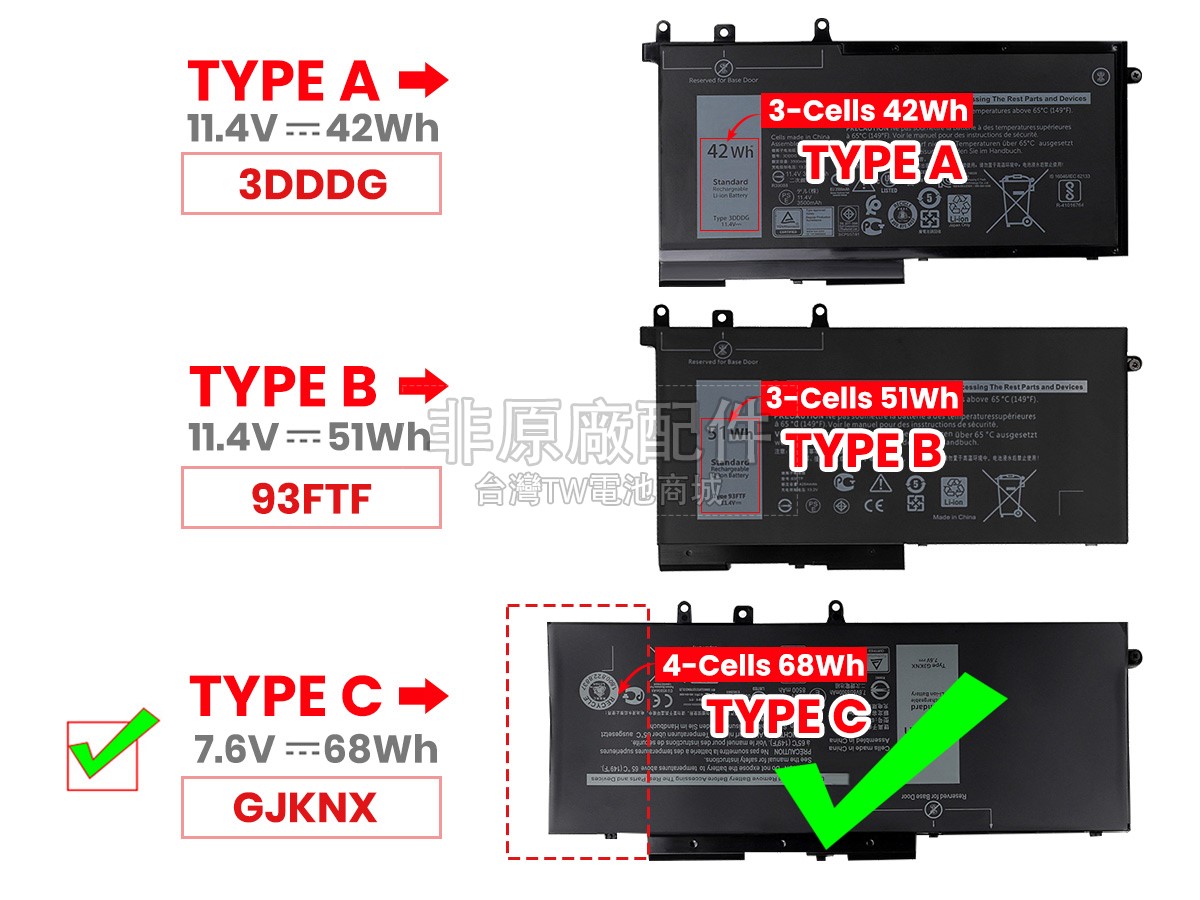 台灣TW電池商城售賣的所有電池均為100%真實容量,我們絕不會在參數上造假。對於製造商提供的每一款電池,我們都會安排技術人員進行參數測試,以確保我們售賣的電池都符合各種認證的要求、100%安全和100%兼容對應的筆記型電腦。極少數情況下,電池參數表上的容量會比電池實物圖上的容量低,這是因為我們檢測時發現製造商給出的電池容量偏高,與電池實際容量不符。於是我們會把電池的實際容量準確地填寫在參數表上,讓顧客直接看到電池的真實容量!這款Dell P72G001電池和原廠有什麼區別?