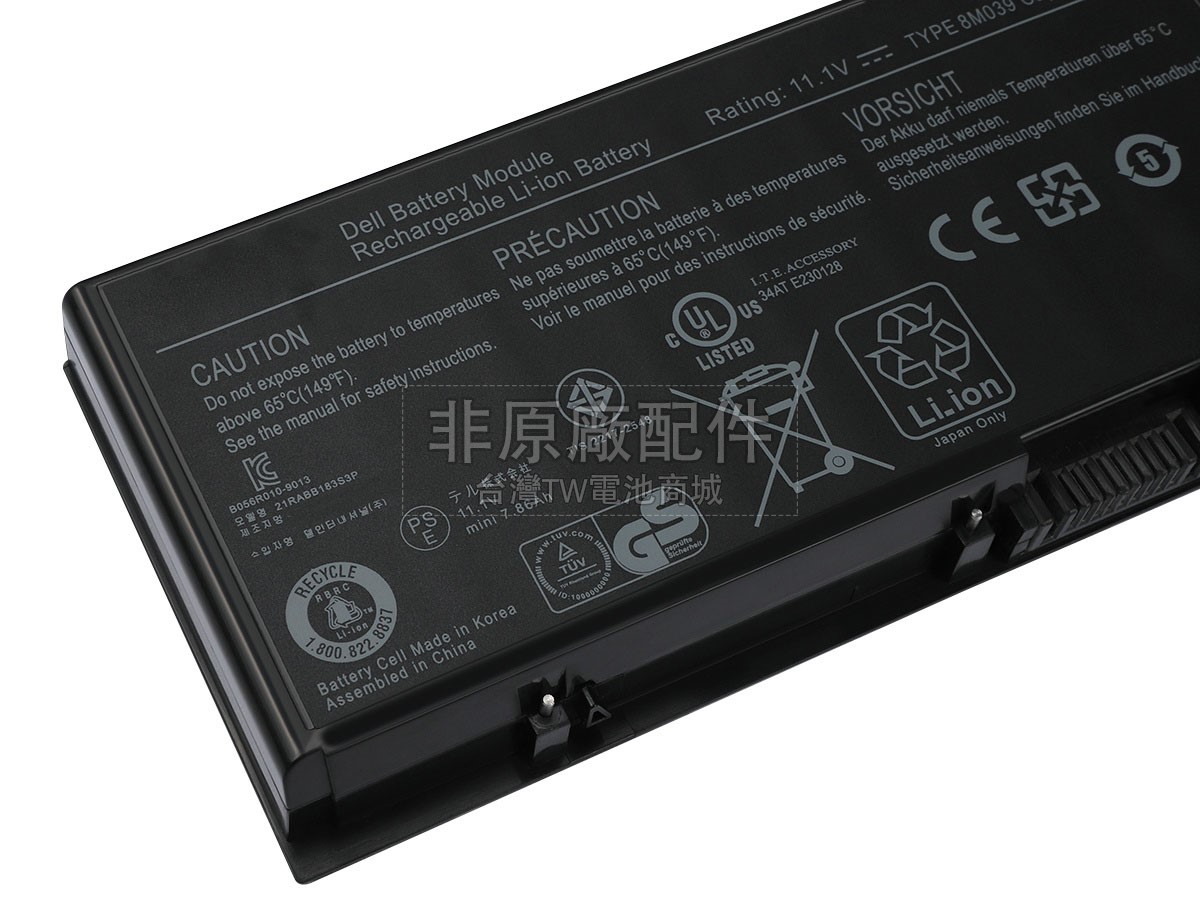 台灣TW電池商城售賣的所有電池均為100%真實容量,我們絕不會在參數上造假。對於製造商提供的每一款電池,我們都會安排技術人員進行參數測試,以確保我們售賣的電池都符合各種認證的要求、100%安全和100%兼容對應的筆記型電腦。極少數情況下,電池參數表上的容量會比電池實物圖上的容量低,這是因為我們檢測時發現製造商給出的電池容量偏高,與電池實際容量不符。於是我們會把電池的實際容量準確地填寫在參數表上,讓顧客直接看到電池的真實容量!這款Dell Precision M6500電池和原廠有什麼區別?