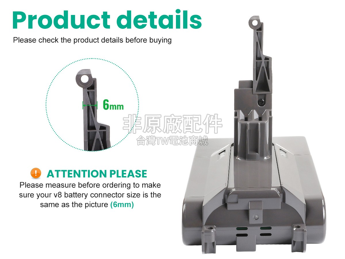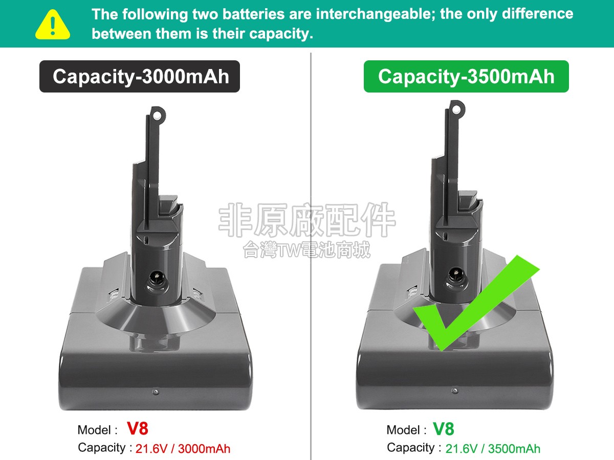 台灣TW電池商城售賣的所有電池均為100%真實容量,我們絕不會在參數上造假。對於製造商提供的每一款電池,我們都會安排技術人員進行參數測試,以確保我們售賣的電池都符合各種認證的要求、100%安全和100%兼容對應的無線吸層器。極少數情況下,電池參數表上的容量會比電池實物圖上的容量低,這是因為我們檢測時發現製造商給出的電池容量偏高,與電池實際容量不符。於是我們會把電池的實際容量準確地填寫在參數表上,讓顧客直接看到電池的真實容量!這款Dyson 215681電池和原廠有什麼區別?