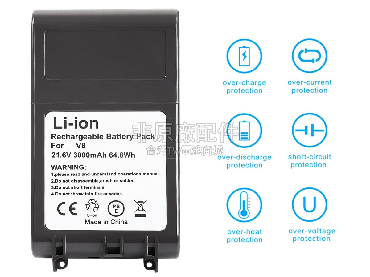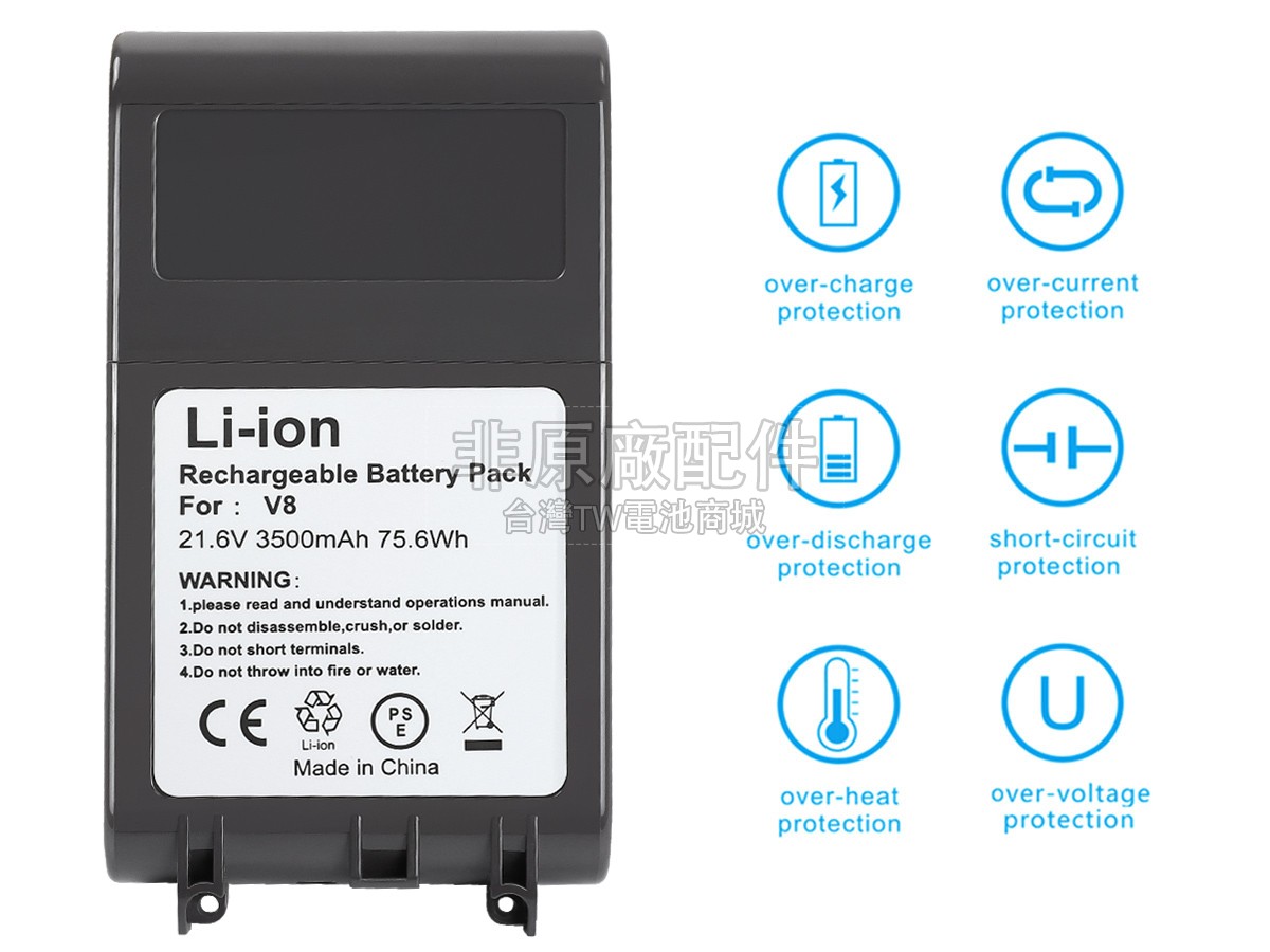 系統穩定,不容忽視!使用美國德州智能IT芯片,保證電池充電更快,對於溫度、電壓、電流的檢測精度正確率更高;電池外殼採用原廠設計方案,100%兼容您的吸層器,實現我們的DYSON 215681電池與您的吸層器零障礙溝通,讓您用的更放心。
