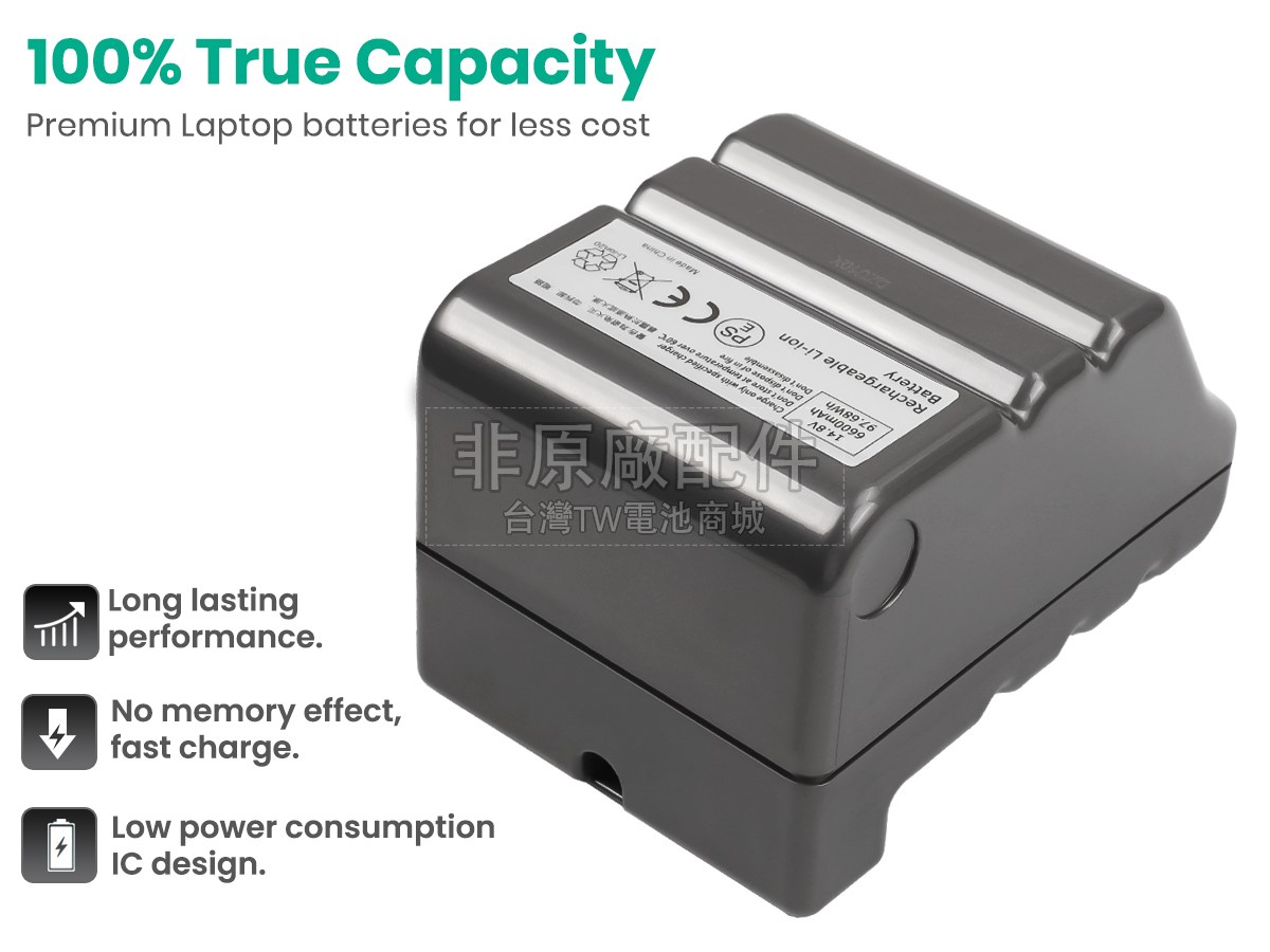 台灣TW電池商城售賣的所有電池均為100%真實容量,我們絕不會在參數上造假。對於製造商提供的每一款電池,我們都會安排技術人員進行參數測試,以確保我們售賣的電池都符合各種認證的要求、100%安全和100%兼容對應的無線吸層器。極少數情況下,電池參數表上的容量會比電池實物圖上的容量低,這是因為我們檢測時發現製造商給出的電池容量偏高,與電池實際容量不符。於是我們會把電池的實際容量準確地填寫在參數表上,讓顧客直接看到電池的真實容量!這款Dyson 49686-03電池和原廠有什麼區別?