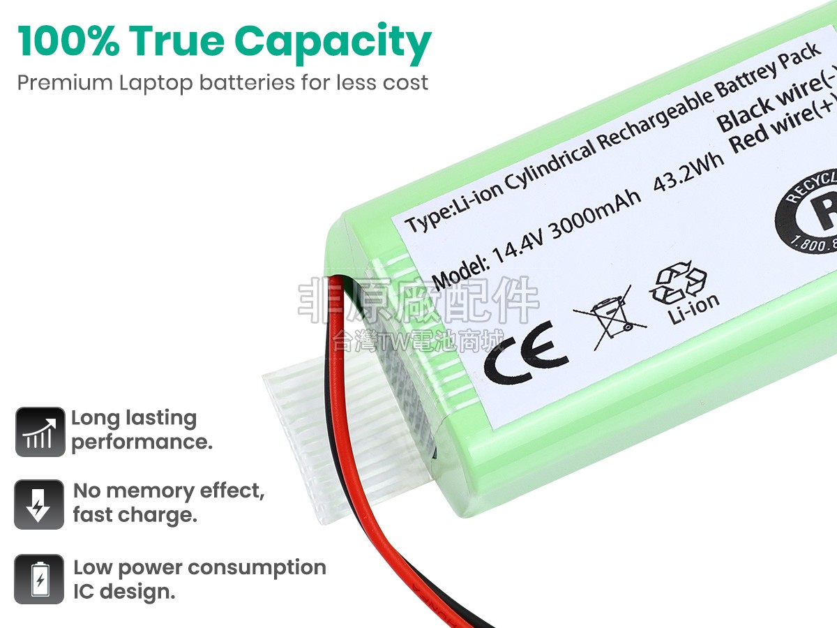 台灣TW電池商城售賣的所有電池均為100%真實容量,我們絕不會在參數上造假。對於製造商提供的每一款電池,我們都會安排技術人員進行參數測試,以確保我們售賣的電池都符合各種認證的要求、100%安全和100%兼容對應的無線吸層器。極少數情況下,電池參數表上的容量會比電池實物圖上的容量低,這是因為我們檢測時發現製造商給出的電池容量偏高,與電池實際容量不符。於是我們會把電池的實際容量準確地填寫在參數表上,讓顧客直接看到電池的真實容量!這款Ecovacs ROBOVAC 35C電池和原廠有什麼區別?