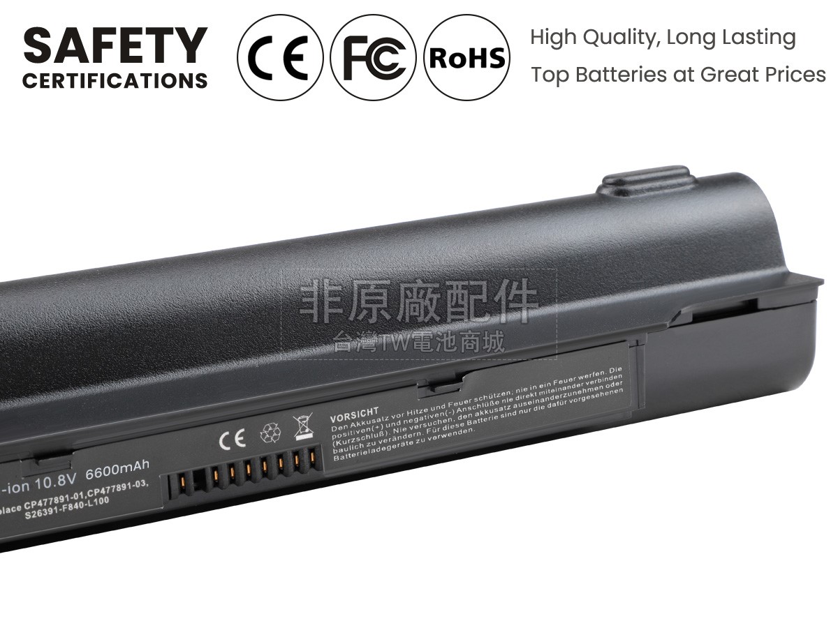 台灣TW電池商城售賣的所有電池均為100%真實容量,我們絕不會在參數上造假。對於製造商提供的每一款電池,我們都會安排技術人員進行參數測試,以確保我們售賣的電池都符合各種認證的要求、100%安全和100%兼容對應的筆記型電腦。極少數情況下,電池參數表上的容量會比電池實物圖上的容量低,這是因為我們檢測時發現製造商給出的電池容量偏高,與電池實際容量不符。於是我們會把電池的實際容量準確地填寫在參數表上,讓顧客直接看到電池的真實容量!這款Fujitsu CP478214-02電池和原廠有什麼區別?