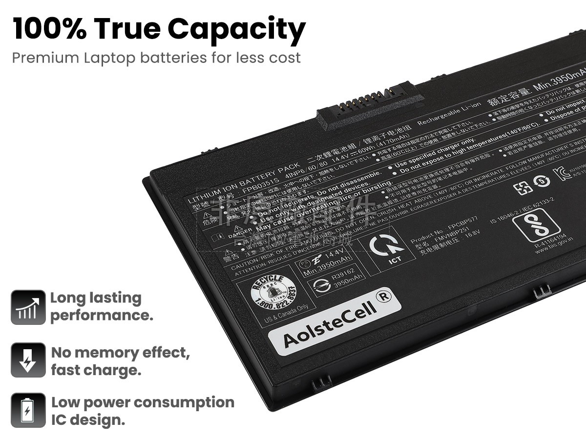 台灣TW電池商城售賣的所有電池均為100%真實容量,我們絕不會在參數上造假。對於製造商提供的每一款電池,我們都會安排技術人員進行參數測試,以確保我們售賣的電池都符合各種認證的要求、100%安全和100%兼容對應的筆記型電腦。極少數情況下,電池參數表上的容量會比電池實物圖上的容量低,這是因為我們檢測時發現製造商給出的電池容量偏高,與電池實際容量不符。於是我們會把電池的實際容量準確地填寫在參數表上,讓顧客直接看到電池的真實容量!這款Fujitsu FPCBP577電池和原廠有什麼區別?