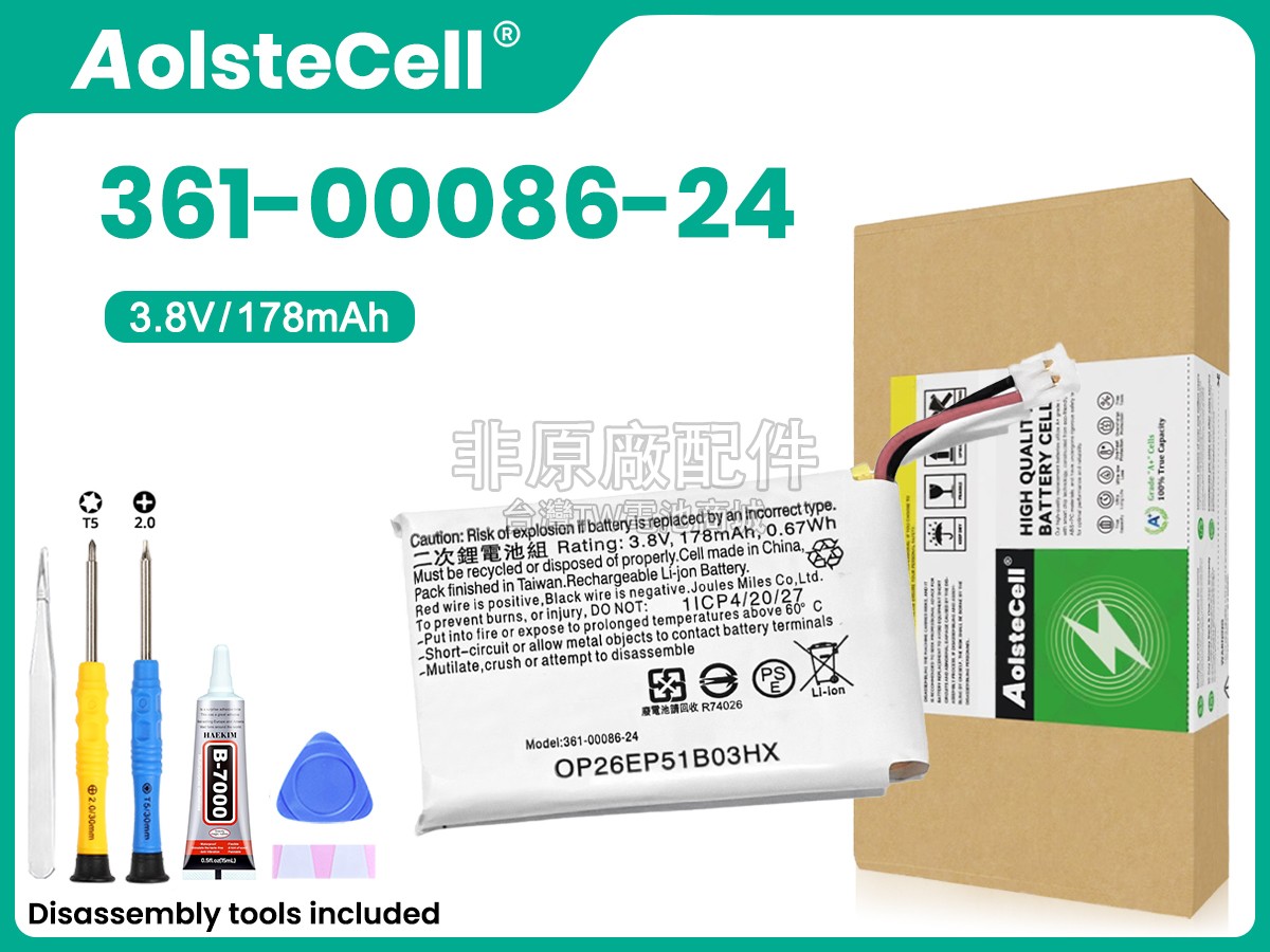 台灣TW電池商城售賣的所有電池均為100%真實容量,我們絕不會在參數上造假。對於製造商提供的每一款電池,我們都會安排技術人員進行參數測試,以確保我們售賣的電池都符合各種認證的要求、100%安全和100%兼容對應的手錶。極少數情況下,電池參數表上的容量會比電池實物圖上的容量低,這是因為我們檢測時發現製造商給出的電池容量偏高,與電池實際容量不符。於是我們會把電池的實際容量準確地填寫在參數表上,讓顧客直接看到電池的真實容量!這款Garmin 361-00086-24電池和原廠有什麼區別?