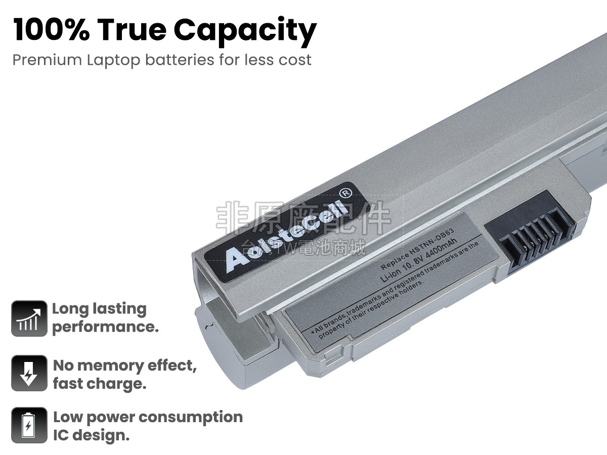 台灣TW電池商城售賣的所有電池均為100%真實容量,我們絕不會在參數上造假。對於製造商提供的每一款電池,我們都會安排技術人員進行參數測試,以確保我們售賣的電池都符合各種認證的要求、100%安全和100%兼容對應的筆記型電腦。極少數情況下,電池參數表上的容量會比電池實物圖上的容量低,這是因為我們檢測時發現製造商給出的電池容量偏高,與電池實際容量不符。於是我們會把電池的實際容量準確地填寫在參數表上,讓顧客直接看到電池的真實容量!這款HP 2133 Mini-Note PC電池和原廠有什麼區別?