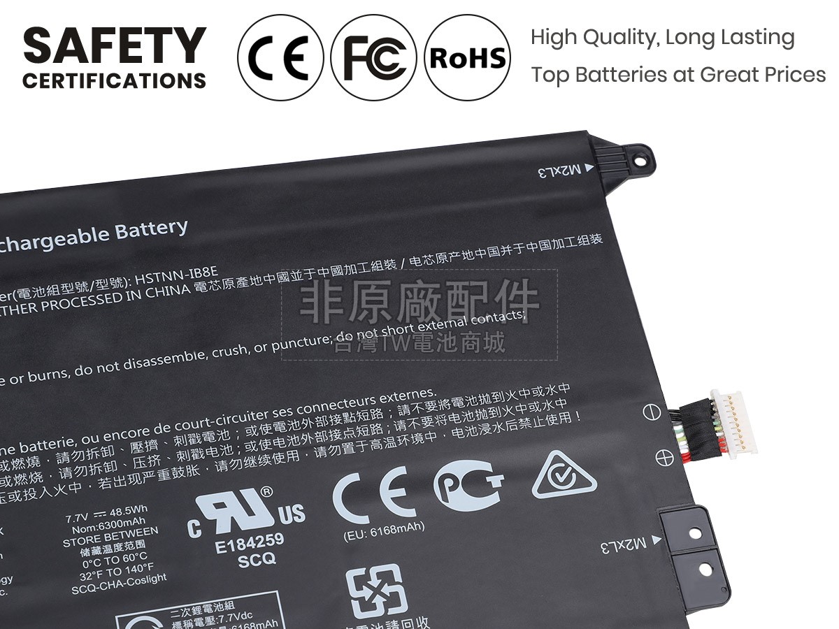 除了使用好的材料外,TW電池商城還以更高的行業標準檢測產品,目前我們的HP Chromebook X2 12-F015NR手提電腦電池已經通過日本PSE強制認證、歐盟RoHS環保認證、CE安全認證、美國FCC認證和MSDS化學品安全認證。