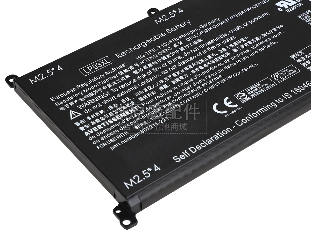台灣TW電池商城售賣的所有電池均為100%真實容量,我們絕不會在參數上造假。對於製造商提供的每一款電池,我們都會安排技術人員進行參數測試,以確保我們售賣的電池都符合各種認證的要求、100%安全和100%兼容對應的筆記型電腦。極少數情況下,電池參數表上的容量會比電池實物圖上的容量低,這是因為我們檢測時發現製造商給出的電池容量偏高,與電池實際容量不符。於是我們會把電池的實際容量準確地填寫在參數表上,讓顧客直接看到電池的真實容量!這款HP Envy 15-AH151NA電池和原廠有什麼區別?