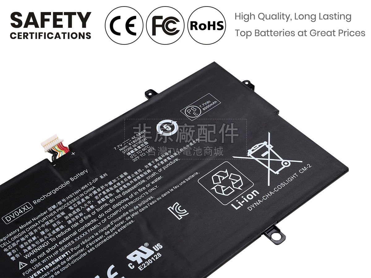 除了使用好的材料外,TW電池商城還以更高的行業標準檢測產品,目前我們的HP HSTNH-W612-DP手提電腦電池已經通過日本PSE強制認證、歐盟RoHS環保認證、CE安全認證、美國FCC認證和MSDS化學品安全認證。
