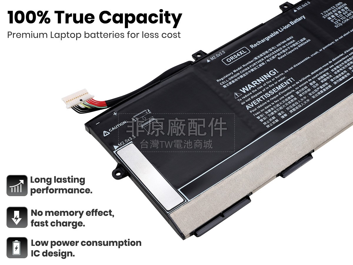 台灣TW電池商城售賣的所有電池均為100%真實容量,我們絕不會在參數上造假。對於製造商提供的每一款電池,我們都會安排技術人員進行參數測試,以確保我們售賣的電池都符合各種認證的要求、100%安全和100%兼容對應的筆記型電腦。極少數情況下,電池參數表上的容量會比電池實物圖上的容量低,這是因為我們檢測時發現製造商給出的電池容量偏高,與電池實際容量不符。於是我們會把電池的實際容量準確地填寫在參數表上,讓顧客直接看到電池的真實容量!這款HP HSTNN-DB9C電池和原廠有什麼區別?