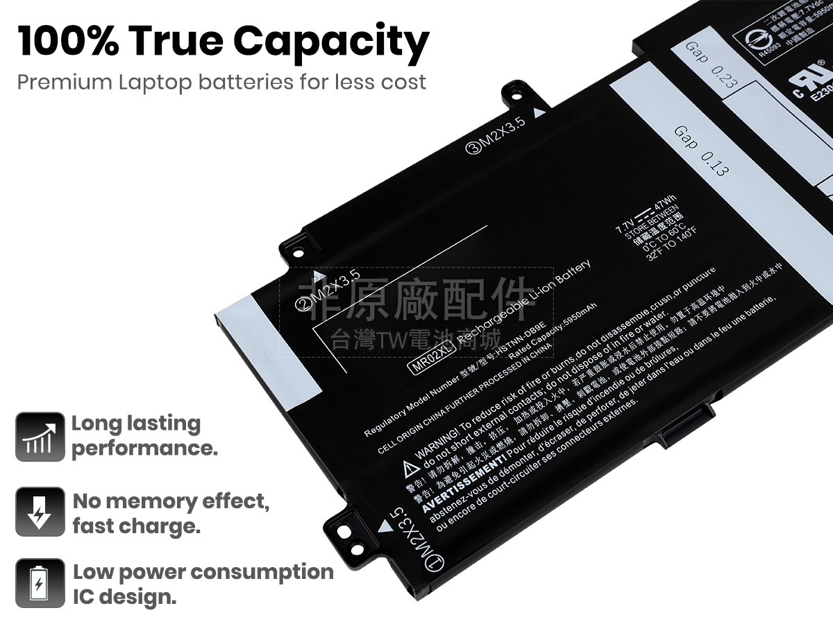台灣TW電池商城售賣的所有電池均為100%真實容量,我們絕不會在參數上造假。對於製造商提供的每一款電池,我們都會安排技術人員進行參數測試,以確保我們售賣的電池都符合各種認證的要求、100%安全和100%兼容對應的筆記型電腦。極少數情況下,電池參數表上的容量會比電池實物圖上的容量低,這是因為我們檢測時發現製造商給出的電池容量偏高,與電池實際容量不符。於是我們會把電池的實際容量準確地填寫在參數表上,讓顧客直接看到電池的真實容量!這款HP MR02047XL電池和原廠有什麼區別?
