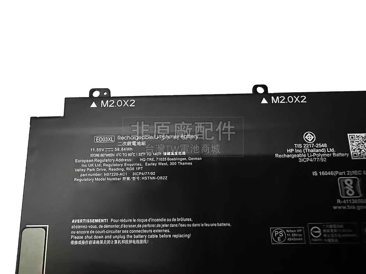 台灣TW電池商城售賣的所有電池均為100%真實容量,我們絕不會在參數上造假。對於製造商提供的每一款電池,我們都會安排技術人員進行參數測試,以確保我們售賣的電池都符合各種認證的要求、100%安全和100%兼容對應的筆記型電腦。極少數情況下,電池參數表上的容量會比電池實物圖上的容量低,這是因為我們檢測時發現製造商給出的電池容量偏高,與電池實際容量不符。於是我們會把電池的實際容量準確地填寫在參數表上,讓顧客直接看到電池的真實容量!這款HP N07220-AC1電池和原廠有什麼區別?