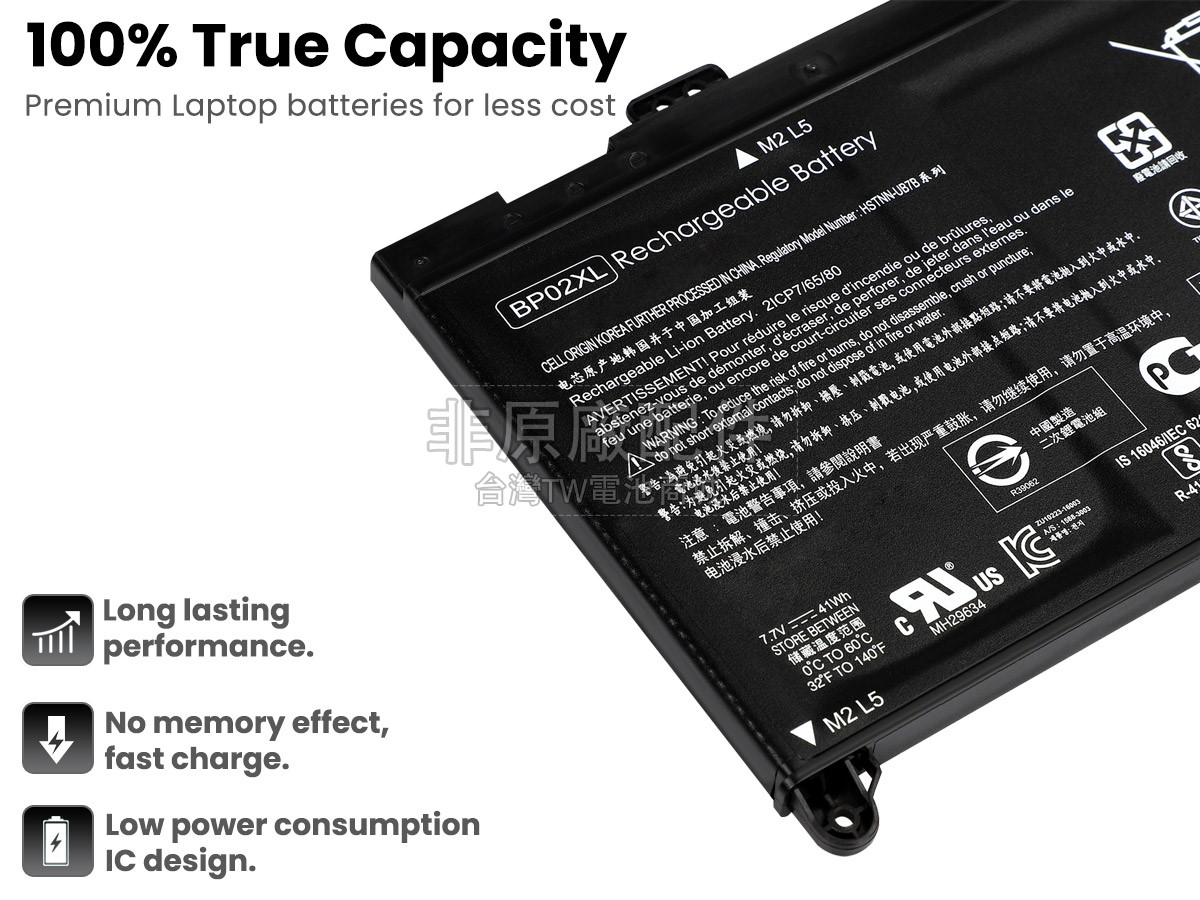 台灣TW電池商城售賣的所有電池均為100%真實容量,我們絕不會在參數上造假。對於製造商提供的每一款電池,我們都會安排技術人員進行參數測試,以確保我們售賣的電池都符合各種認證的要求、100%安全和100%兼容對應的筆記型電腦。極少數情況下,電池參數表上的容量會比電池實物圖上的容量低,這是因為我們檢測時發現製造商給出的電池容量偏高,與電池實際容量不符。於是我們會把電池的實際容量準確地填寫在參數表上,讓顧客直接看到電池的真實容量!這款HP Pavilion 15-AU123NL電池和原廠有什麼區別?