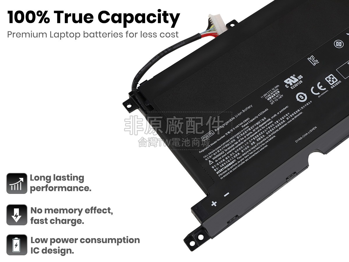 台灣TW電池商城售賣的所有電池均為100%真實容量,我們絕不會在參數上造假。對於製造商提供的每一款電池,我們都會安排技術人員進行參數測試,以確保我們售賣的電池都符合各種認證的要求、100%安全和100%兼容對應的筆記型電腦。極少數情況下,電池參數表上的容量會比電池實物圖上的容量低,這是因為我們檢測時發現製造商給出的電池容量偏高,與電池實際容量不符。於是我們會把電池的實際容量準確地填寫在參數表上,讓顧客直接看到電池的真實容量!這款HP Pavilion 15-EC0018NM電池和原廠有什麼區別?