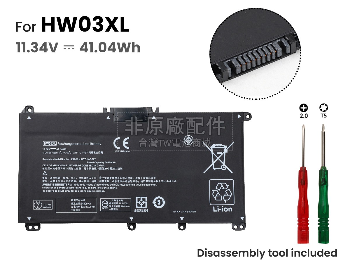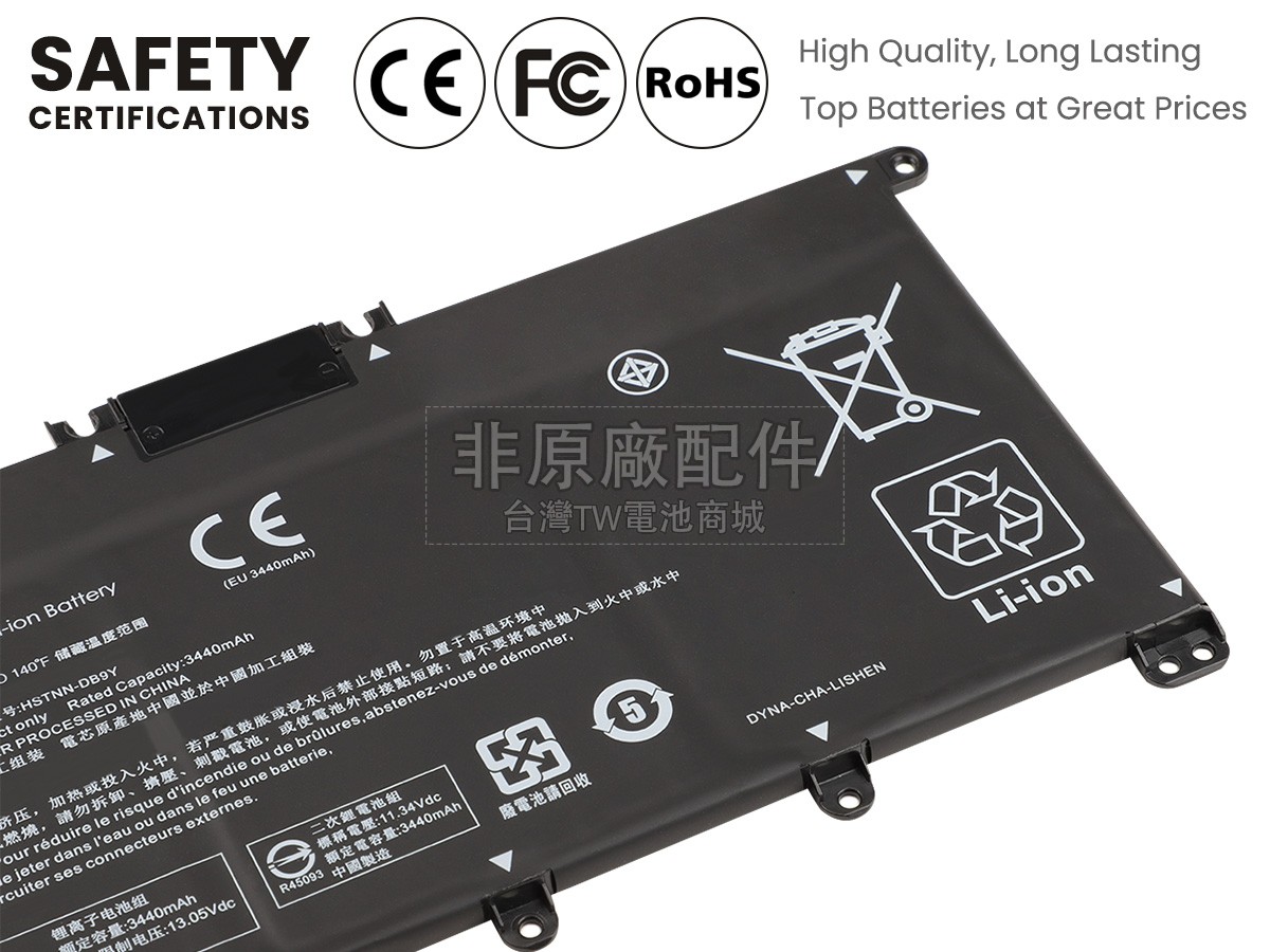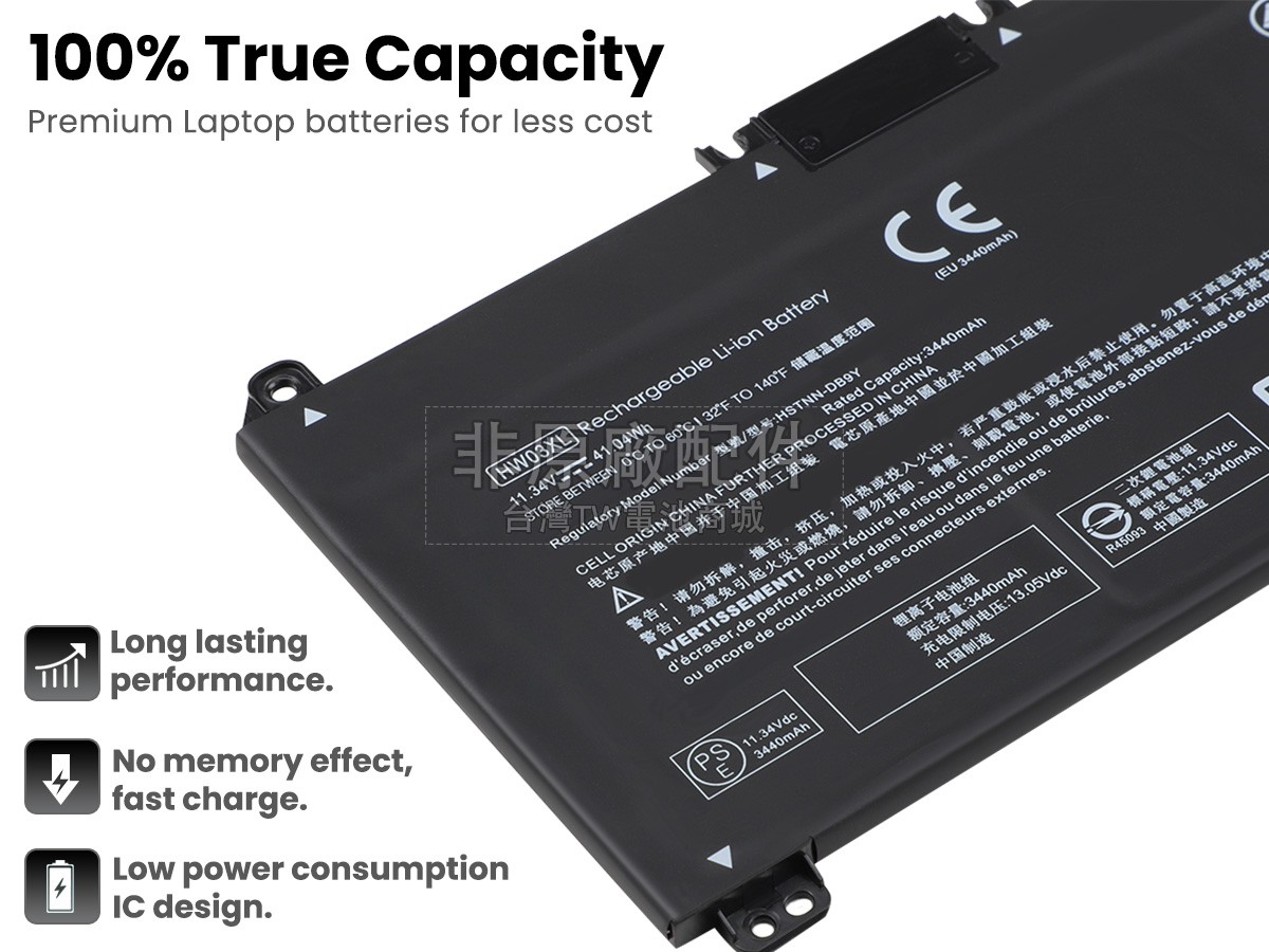 台灣TW電池商城售賣的所有電池均為100%真實容量,我們絕不會在參數上造假。對於製造商提供的每一款電池,我們都會安排技術人員進行參數測試,以確保我們售賣的電池都符合各種認證的要求、100%安全和100%兼容對應的筆記型電腦。極少數情況下,電池參數表上的容量會比電池實物圖上的容量低,這是因為我們檢測時發現製造商給出的電池容量偏高,與電池實際容量不符。於是我們會把電池的實際容量準確地填寫在參數表上,讓顧客直接看到電池的真實容量!這款HP Pavilion 15-EG0172NB電池和原廠有什麼區別?
