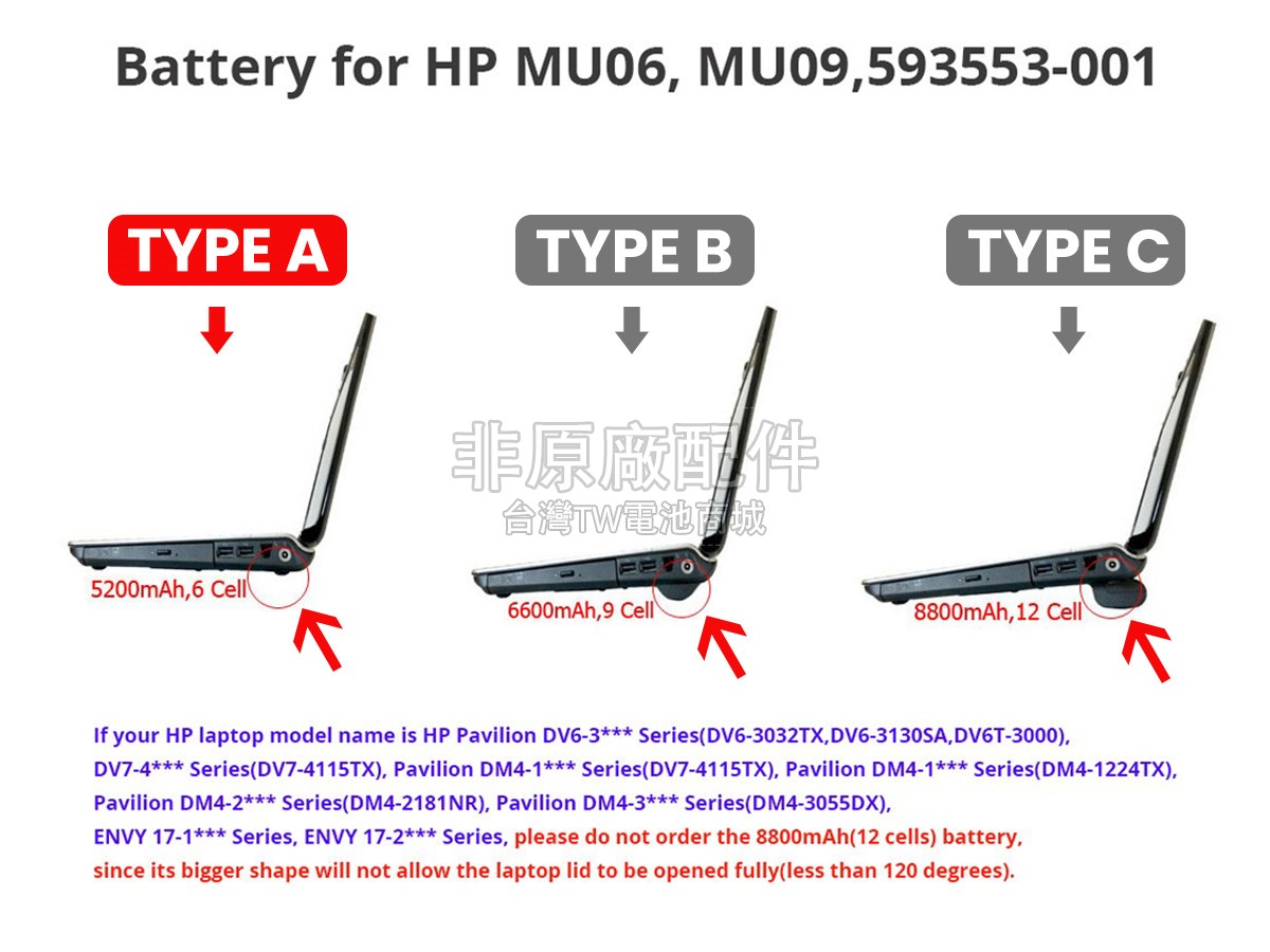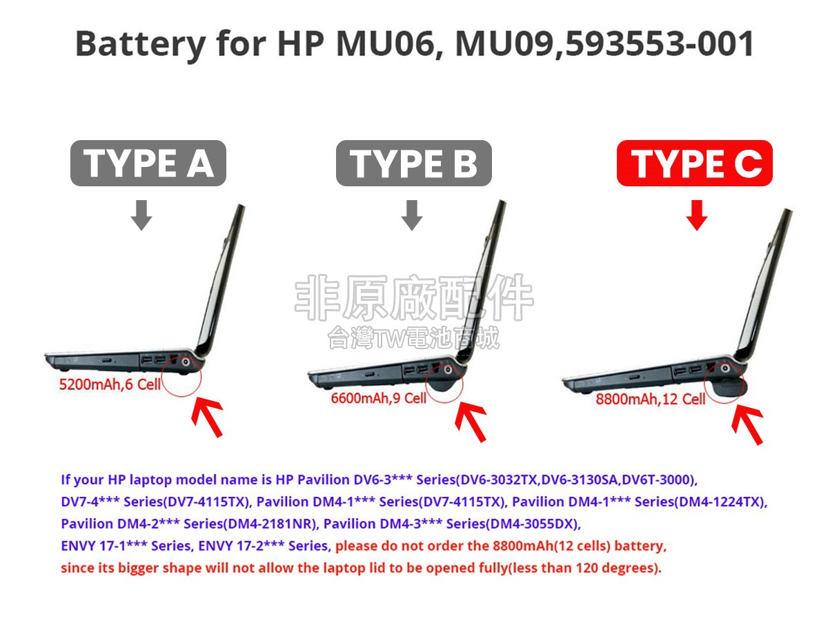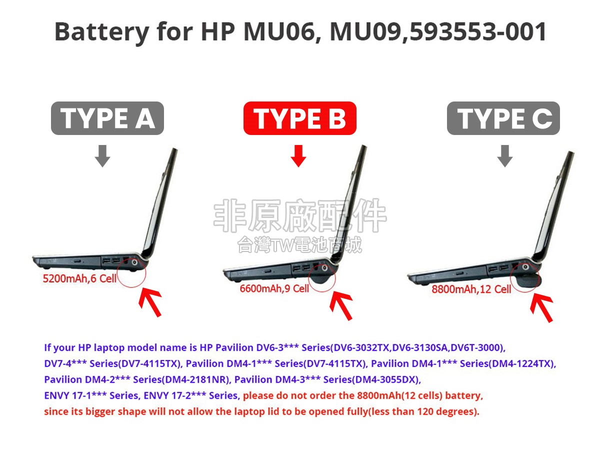 2. These replacement Pavilion DV7-4023TX batteries are not compatible with HP Pavilion DV3-1000, DV3-2000 series and HP Pavilion DV6-1000, DV6-2000, DV6-7000, DV7-7000 Series laptops. 3. The 6600mAh(9 Cells) and 8800mAh(12 Cells) batteries will extend out about 1 inch from the bottom of the laptop, bigger size but help cooling and lasting longer.