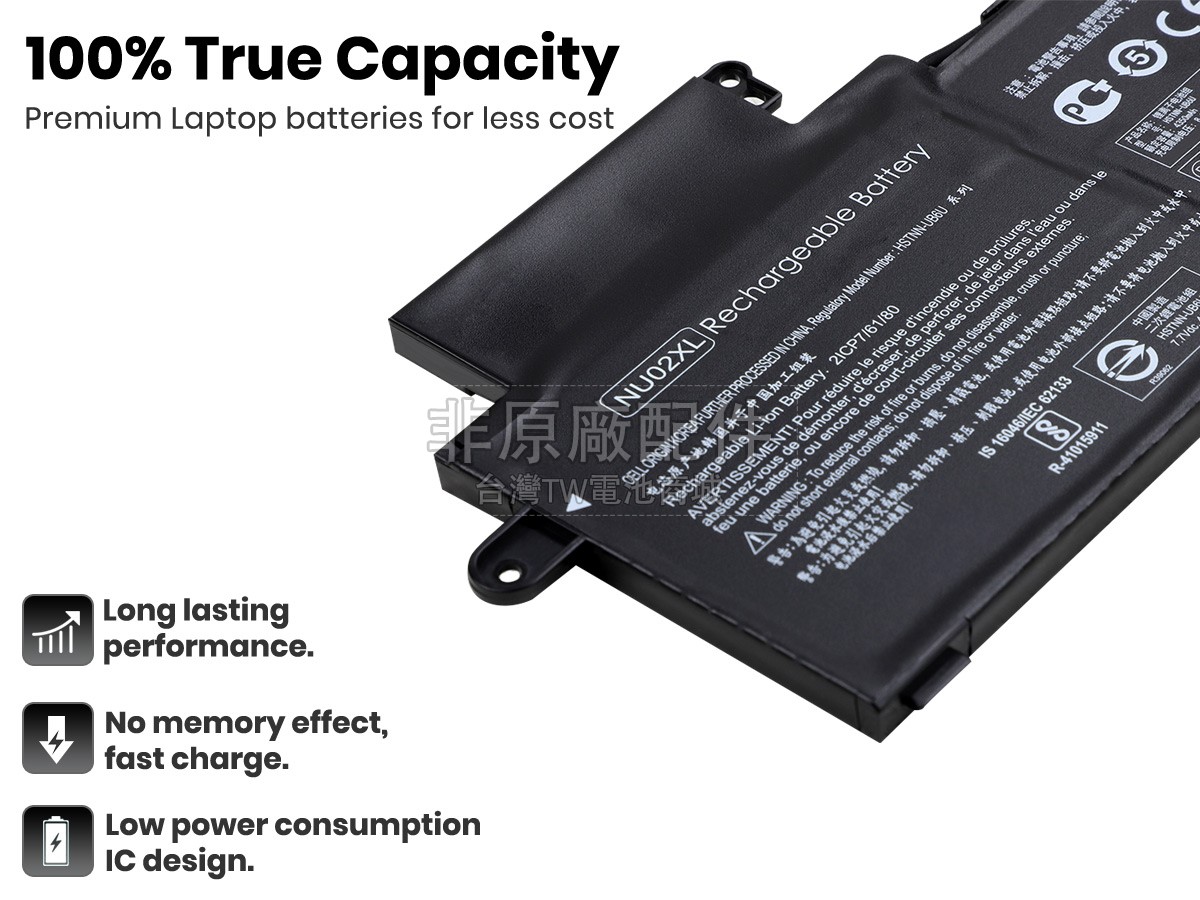 台灣TW電池商城售賣的所有電池均為100%真實容量,我們絕不會在參數上造假。對於製造商提供的每一款電池,我們都會安排技術人員進行參數測試,以確保我們售賣的電池都符合各種認證的要求、100%安全和100%兼容對應的筆記型電腦。極少數情況下,電池參數表上的容量會比電池實物圖上的容量低,這是因為我們檢測時發現製造商給出的電池容量偏高,與電池實際容量不符。於是我們會把電池的實際容量準確地填寫在參數表上,讓顧客直接看到電池的真實容量!這款HP Pavilion X360 11-U048TU電池和原廠有什麼區別?