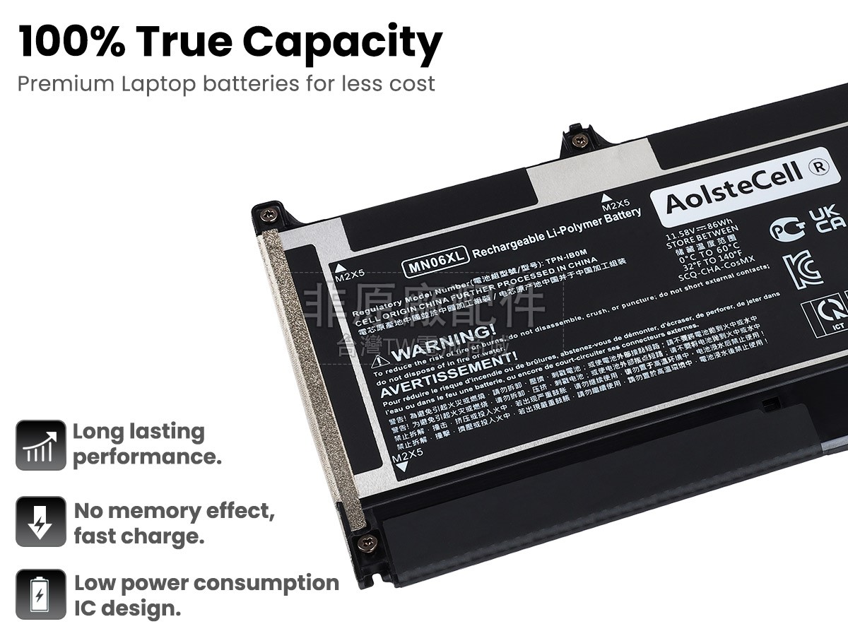 台灣TW電池商城售賣的所有電池均為100%真實容量,我們絕不會在參數上造假。對於製造商提供的每一款電池,我們都會安排技術人員進行參數測試,以確保我們售賣的電池都符合各種認證的要求、100%安全和100%兼容對應的筆記型電腦。極少數情況下,電池參數表上的容量會比電池實物圖上的容量低,這是因為我們檢測時發現製造商給出的電池容量偏高,與電池實際容量不符。於是我們會把電池的實際容量準確地填寫在參數表上,讓顧客直接看到電池的真實容量!這款HP ZBook STUDIO G9電池和原廠有什麼區別?