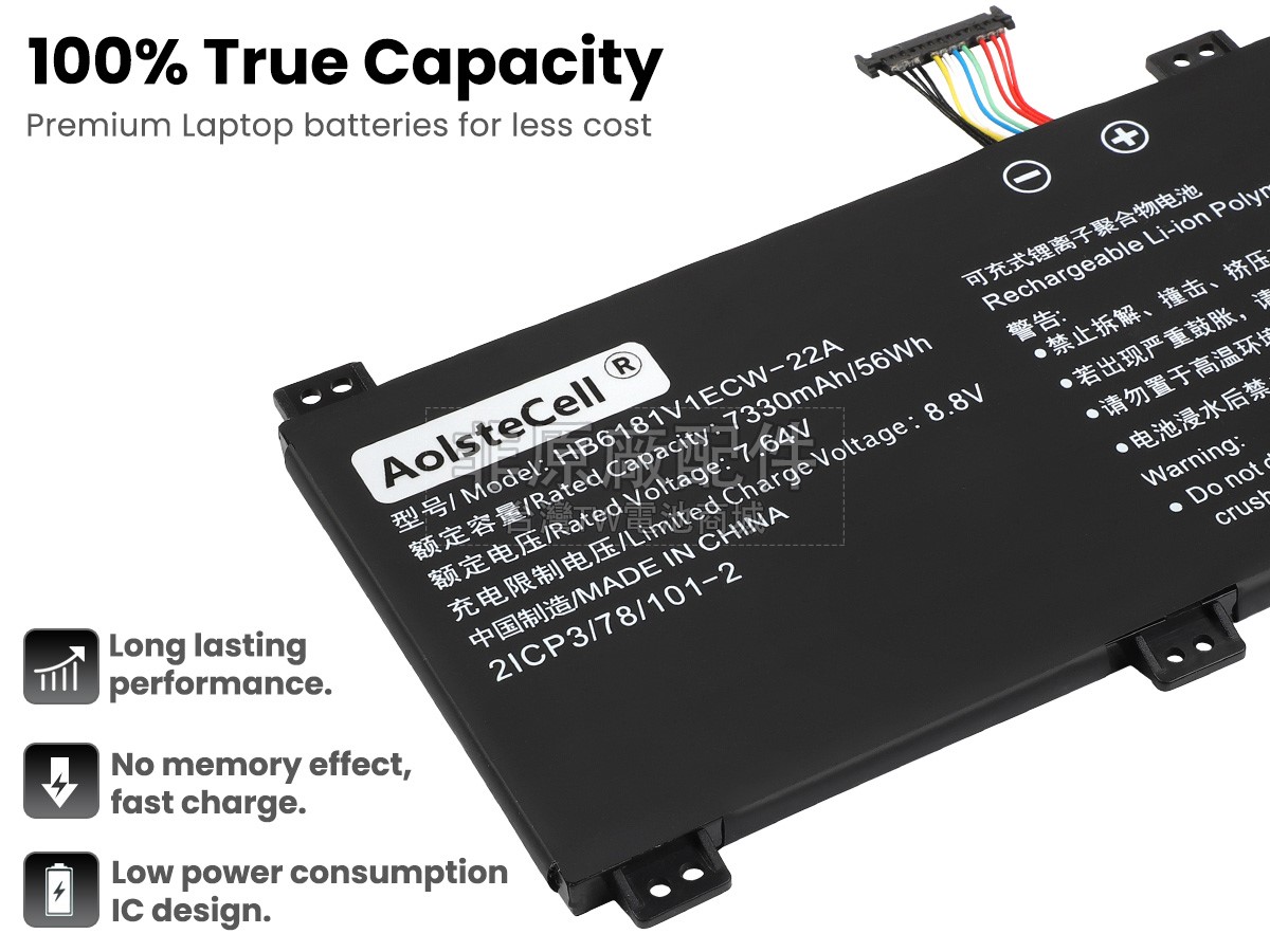 筆電電池好不好要看“芯”,內置電芯是筆電電池最重要的組成部分。 我們的HUAWEI華為HB6181V1ECW-22A筆記型電腦電池都是採用原廠品質的A+級電芯組裝而成,確保更好的安全性,更長的供電時間和更久的使用壽命。