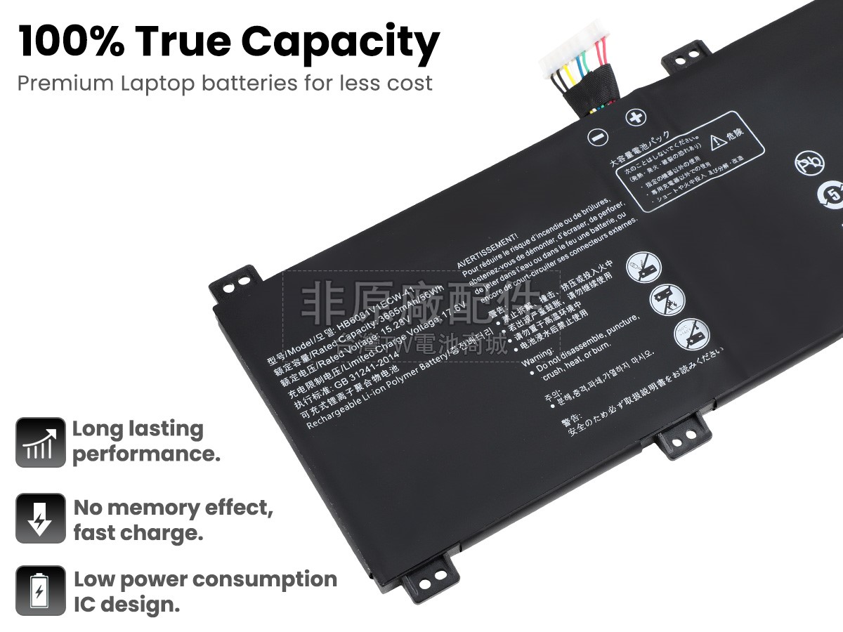 為什麼您應該從我們這裡購買HUAWEI華為HBL-W19電池?電池是一種特殊的消耗品,用料的好壞直接決定了電池的性能和壽命。為了保證顧客良好的使用體驗,我們在這款原廠品質的Huawei HBL-W19筆電電池投入了高昂的材料成本,採用全新原廠進口的A+級電芯、美國德州TI芯片和耐高溫抗磨損的ABS+PC合金環保材料,經過100多道安全檢測製造而成。從而保證,這款電池無論在性能、壽命還是安全上都可以滿足您日常休閒、娛樂和辦公的需求。