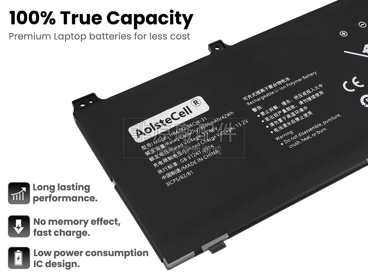為什麼您應該從我們這裡購買HUAWEI華為MAGICBOOK 15 2021電池?電池是一種特殊的消耗品,用料的好壞直接決定了電池的性能和壽命。為了保證顧客良好的使用體驗,我們在這款原廠品質的Huawei MAGICBOOK 15 2021筆電電池投入了高昂的材料成本,採用全新原廠進口的A+級電芯、美國德州TI芯片和耐高溫抗磨損的ABS+PC合金環保材料,經過100多道安全檢測製造而成。從而保證,這款電池無論在性能、壽命還是安全上都可以滿足您日常休閒、娛樂和辦公的需求。