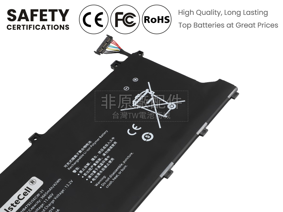 除了使用好的材料外,TW電池商城還以更高的行業標準檢測產品,目前我們的Huawei MAGICBOOK 15 2021手提電腦電池已經通過日本PSE強制認證、歐盟RoHS環保認證、CE安全認證、美國FCC認證和MSDS化學品安全認證。