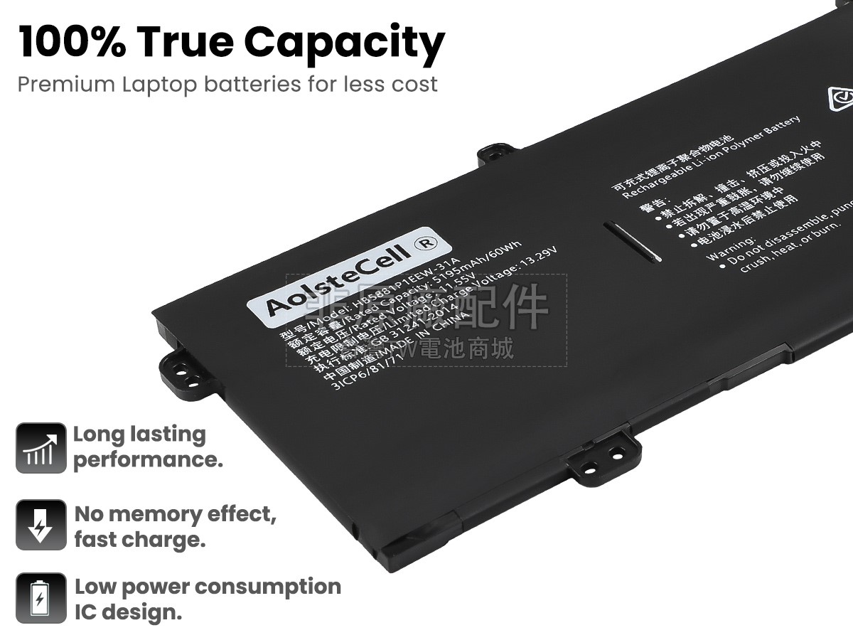 台灣TW電池商城售賣的所有電池均為100%真實容量,我們絕不會在參數上造假。對於製造商提供的每一款電池,我們都會安排技術人員進行參數測試,以確保我們售賣的電池都符合各種認證的要求、100%安全和100%兼容對應的筆記型電腦。極少數情況下,電池參數表上的容量會比電池實物圖上的容量低,這是因為我們檢測時發現製造商給出的電池容量偏高,與電池實際容量不符。於是我們會把電池的實際容量準確地填寫在參數表上,讓顧客直接看到電池的真實容量!這款Huawei MAGICBOOK V 14電池和原廠有什麼區別?