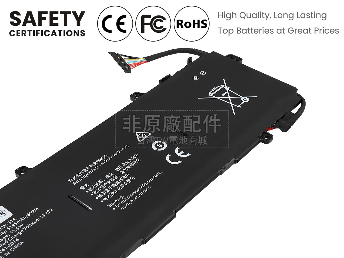 除了使用好的材料外,TW電池商城還以更高的行業標準檢測產品,目前我們的Huawei MAGICBOOK V 14手提電腦電池已經通過日本PSE強制認證、歐盟RoHS環保認證、CE安全認證、美國FCC認證和MSDS化學品安全認證。