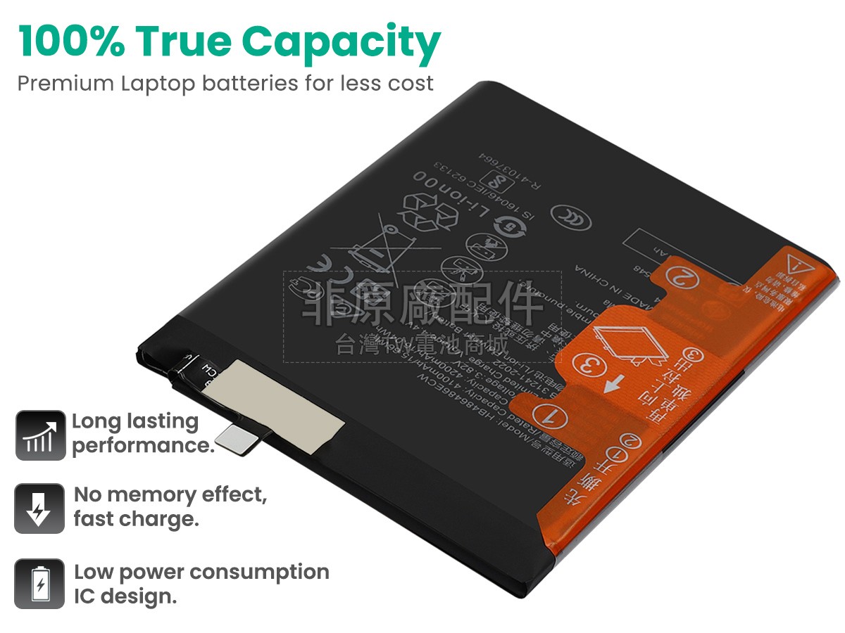 台灣TW電池商城售賣的所有電池均為100%真實容量,我們絕不會在參數上造假。對於製造商提供的每一款電池,我們都會安排技術人員進行參數測試,以確保我們售賣的電池都符合各種認證的要求、100%安全和100%兼容。極少數情況下,電池參數表上的容量會比電池實物圖上的容量低,這是因為我們檢測時發現製造商給出的電池容量偏高,與電池實際容量不符。於是我們會把電池的實際容量準確地填寫在參數表上,讓顧客直接看到電池的真實容量!這款Huawei MATE 20 PRO SINGLE SIM (LYA-L09C)電池和原廠有什麼區別?