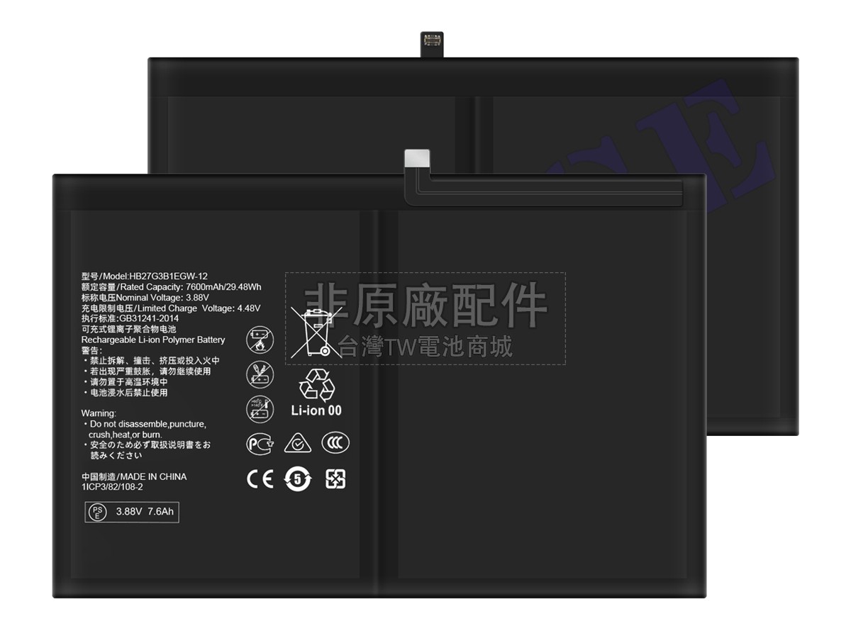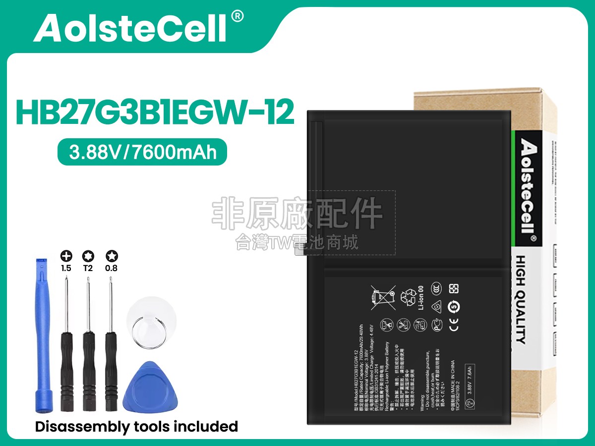 台灣TW電池商城售賣的所有電池均為100%真實容量,我們絕不會在參數上造假。對於製造商提供的每一款電池,我們都會安排技術人員進行參數測試,以確保我們售賣的電池都符合各種認證的要求、100%安全和100%兼容對應的筆記型電腦。極少數情況下,電池參數表上的容量會比電池實物圖上的容量低,這是因為我們檢測時發現製造商給出的電池容量偏高,與電池實際容量不符。於是我們會把電池的實際容量準確地填寫在參數表上,讓顧客直接看到電池的真實容量!這款Huawei MATEPAD 11.5 2023 BTK-W00電池和原廠有什麼區別?