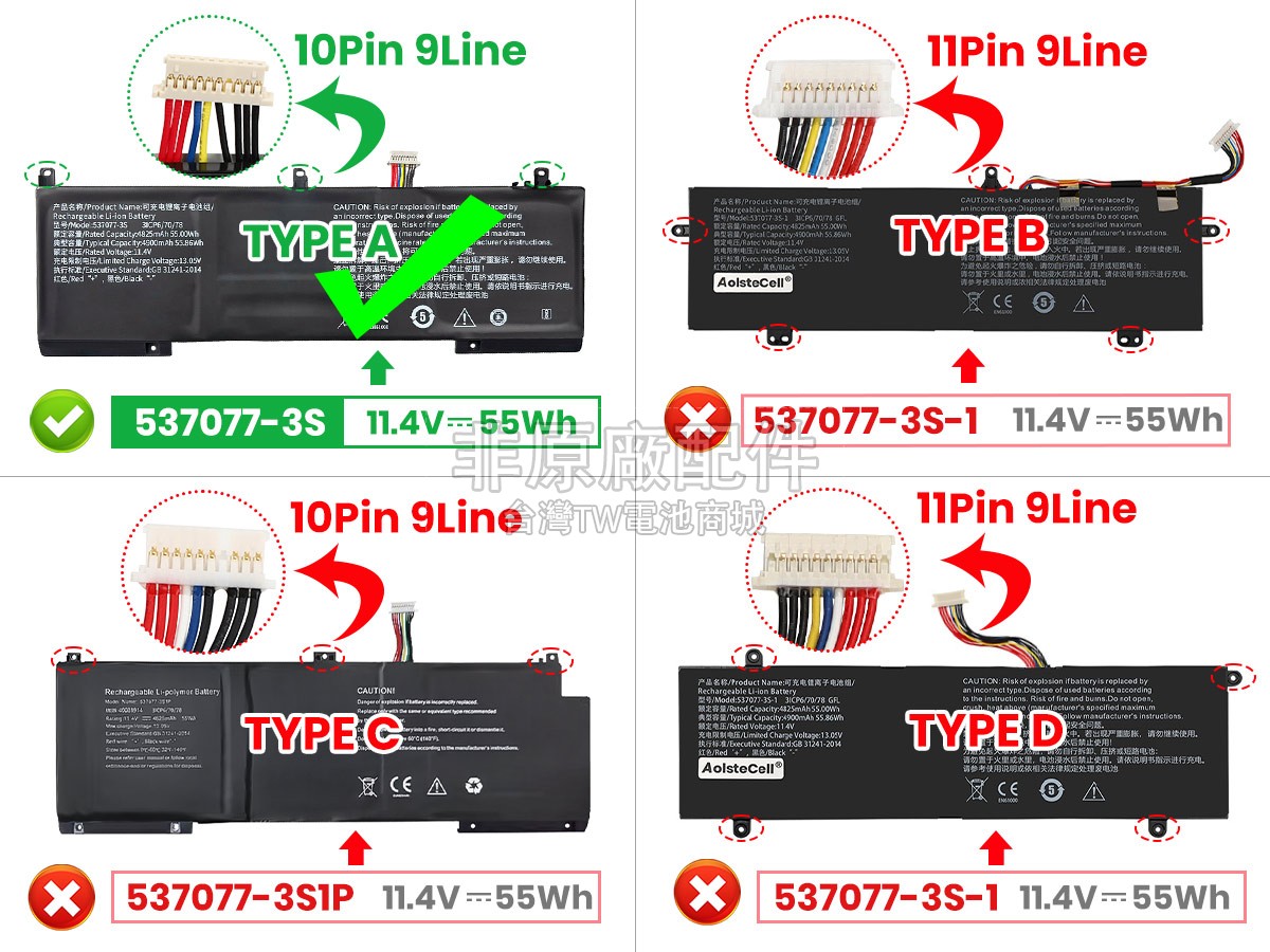 台灣TW電池商城售賣的所有電池均為100%真實容量,我們絕不會在參數上造假。對於製造商提供的每一款電池,我們都會安排技術人員進行參數測試,以確保我們售賣的電池都符合各種認證的要求、100%安全和100%兼容對應的筆記型電腦。極少數情況下,電池參數表上的容量會比電池實物圖上的容量低,這是因為我們檢測時發現製造商給出的電池容量偏高,與電池實際容量不符。於是我們會把電池的實際容量準確地填寫在參數表上,讓顧客直接看到電池的真實容量!這款IPASON 537077-3S電池和原廠有什麼區別?