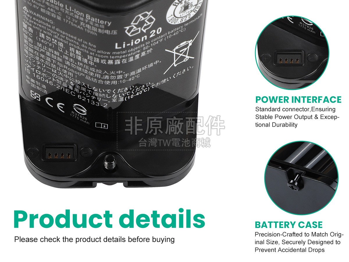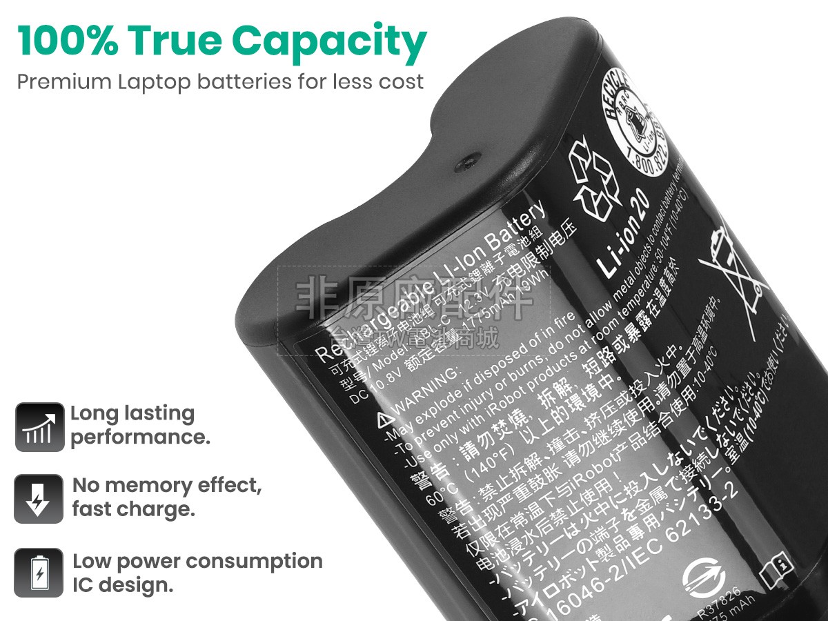 台灣TW電池商城售賣的所有電池均為100%真實容量,我們絕不會在參數上造假。對於製造商提供的每一款電池,我們都會安排技術人員進行參數測試,以確保我們售賣的電池都符合各種認證的要求、100%安全和100%兼容對應的無線吸層器。極少數情況下,電池參數表上的容量會比電池實物圖上的容量低,這是因為我們檢測時發現製造商給出的電池容量偏高,與電池實際容量不符。於是我們會把電池的實際容量準確地填寫在參數表上,讓顧客直接看到電池的真實容量!這款Irobot M6142電池和原廠有什麼區別?