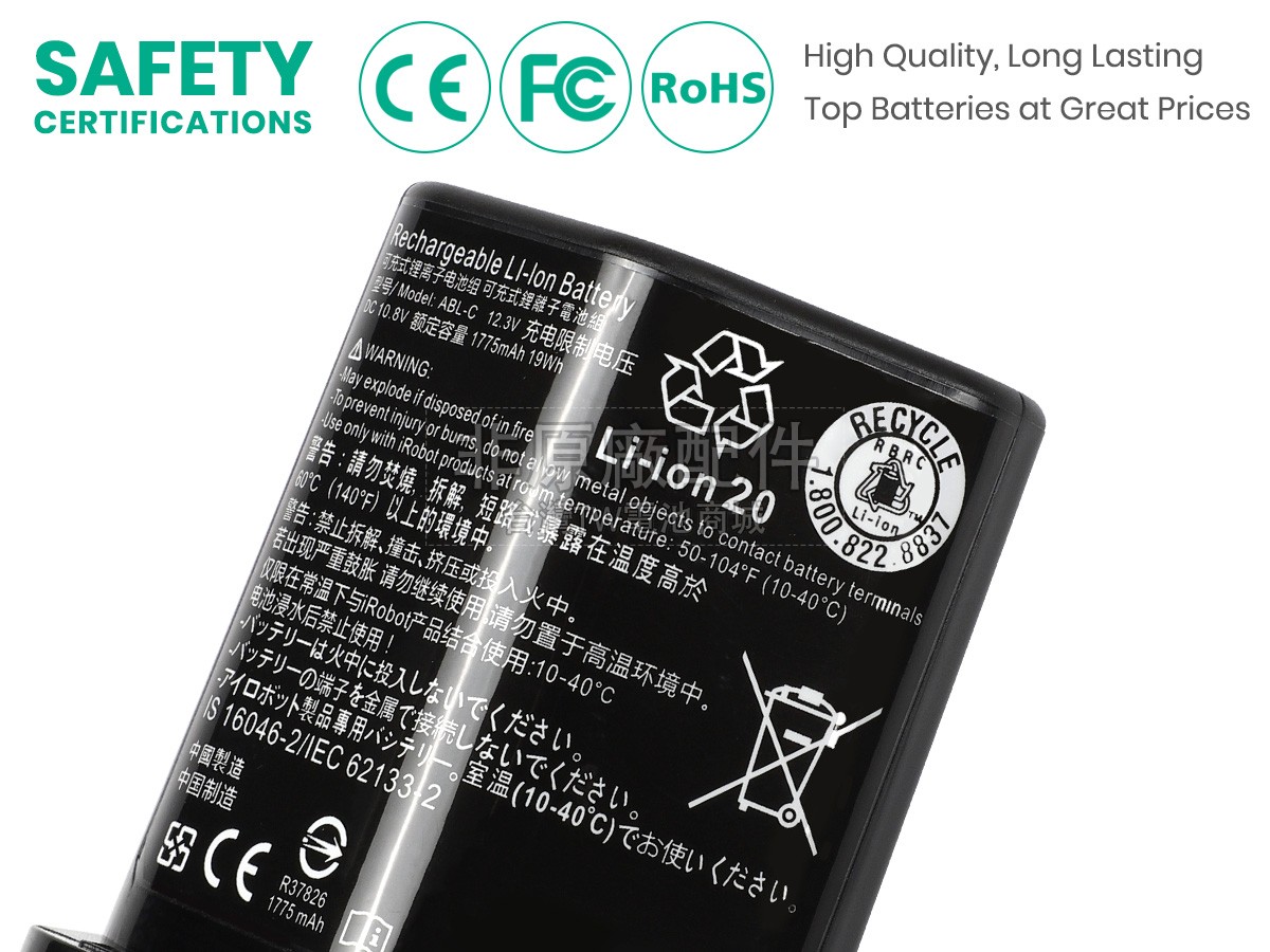 為什麼您應該從我們這裡購買IROBOT M6142電池?電池是一種特殊的消耗品,用料的好壞直接決定了電池的性能和壽命。為了保證顧客良好的使用體驗,我們在這款原廠品質的Irobot M6142電池投入了高昂的材料成本,採用全新原廠進口的A+級電芯、美國德州TI芯片和耐高溫抗磨損的ABS+PC合金環保材料,經過100多道安全檢測製造而成。從而保證,這款電池無論在性能、壽命還是安全上都可以滿足您日常休閒、娛樂和辦公的需求。