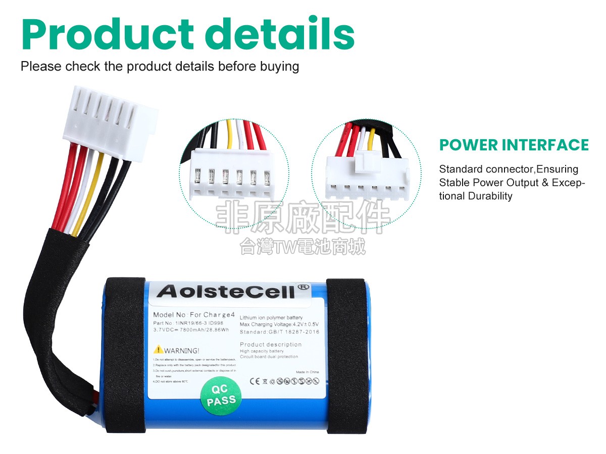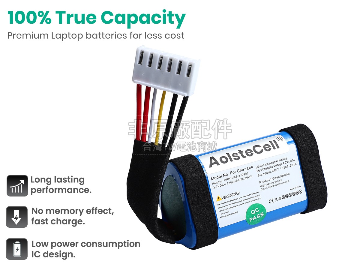 台灣TW電池商城售賣的所有電池均為100%真實容量,我們絕不會在參數上造假。對於製造商提供的每一款電池,我們都會安排技術人員進行參數測試,以確保我們售賣的電池都符合各種認證的要求、100%安全和100%兼容對應的音箱。極少數情況下,電池參數表上的容量會比電池實物圖上的容量低,這是因為我們檢測時發現製造商給出的電池容量偏高,與電池實際容量不符。於是我們會把電池的實際容量準確地填寫在參數表上,讓顧客直接看到電池的真實容量!這款JBL CHARGE 4J電池和原廠有什麼區別?