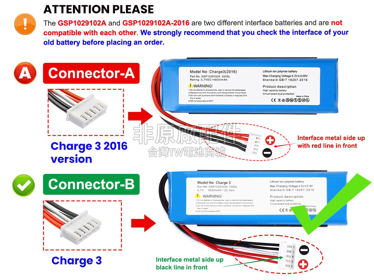 台灣TW電池商城售賣的所有電池均為100%真實容量,我們絕不會在參數上造假。對於製造商提供的每一款電池,我們都會安排技術人員進行參數測試,以確保我們售賣的電池都符合各種認證的要求、100%安全和100%兼容對應的音箱。極少數情況下,電池參數表上的容量會比電池實物圖上的容量低,這是因為我們檢測時發現製造商給出的電池容量偏高,與電池實際容量不符。於是我們會把電池的實際容量準確地填寫在參數表上,讓顧客直接看到電池的真實容量!這款JBL GSP1029102A電池和原廠有什麼區別?