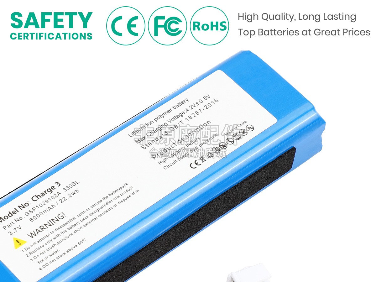 為什麼您應該從我們這裡購買JBL GSP1029102A電池?電池是一種特殊的消耗品,用料的好壞直接決定了電池的性能和壽命。為了保證顧客良好的使用體驗,我們在這款原廠品質的JBL GSP1029102A電池投入了高昂的材料成本,採用全新原廠進口的A+級電芯、美國德州TI芯片和耐高溫抗磨損的ABS+PC合金環保材料,經過100多道安全檢測製造而成。從而保證,這款電池無論在性能、壽命還是安全上都可以滿足您日常休閒、娛樂和辦公的需求。