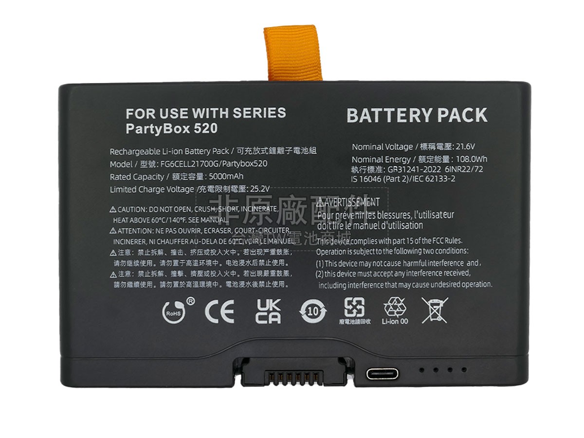 6芯5000mAh JBL PARTYBOX 520-TYPEC電池