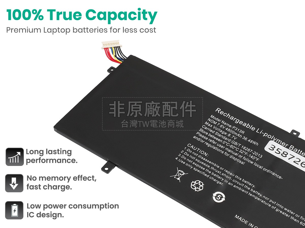 台灣TW電池商城售賣的所有電池均為100%真實容量,我們絕不會在參數上造假。對於製造商提供的每一款電池,我們都會安排技術人員進行參數測試,以確保我們售賣的電池都符合各種認證的要求、100%安全和100%兼容對應的筆記型電腦。極少數情況下,電池參數表上的容量會比電池實物圖上的容量低,這是因為我們檢測時發現製造商給出的電池容量偏高,與電池實際容量不符。於是我們會把電池的實際容量準確地填寫在參數表上,讓顧客直接看到電池的真實容量!這款Jumper 3282122-2S電池和原廠有什麼區別?