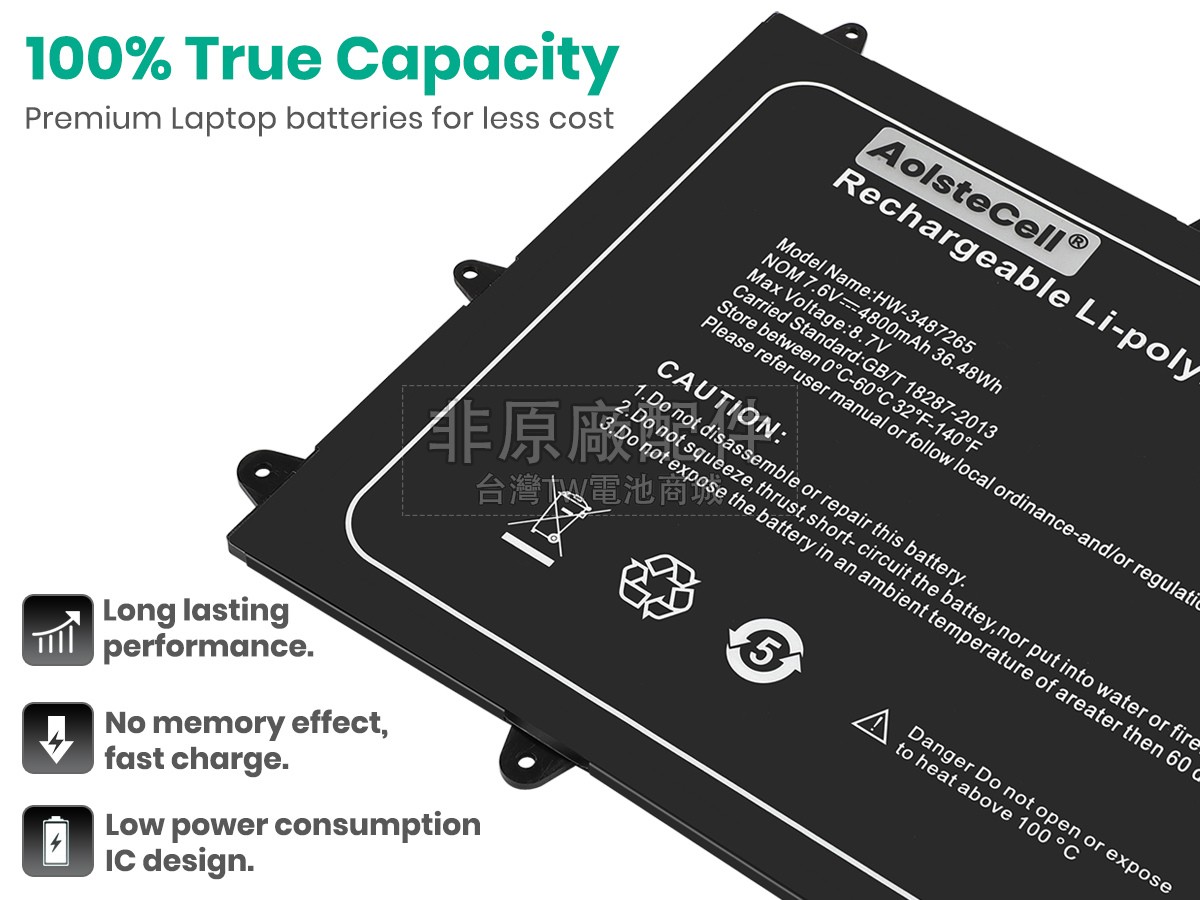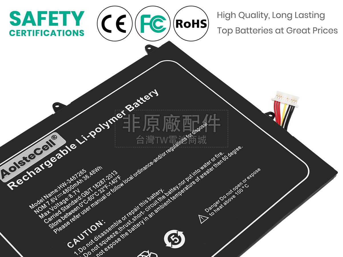 台灣TW電池商城售賣的所有電池均為100%真實容量,我們絕不會在參數上造假。對於製造商提供的每一款電池,我們都會安排技術人員進行參數測試,以確保我們售賣的電池都符合各種認證的要求、100%安全和100%兼容對應的筆記型電腦。極少數情況下,電池參數表上的容量會比電池實物圖上的容量低,這是因為我們檢測時發現製造商給出的電池容量偏高,與電池實際容量不符。於是我們會把電池的實際容量準確地填寫在參數表上,讓顧客直接看到電池的真實容量!這款Jumper HW-3487265電池和原廠有什麼區別?