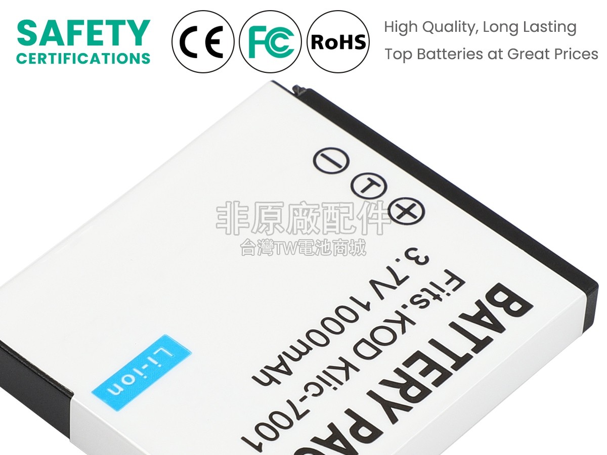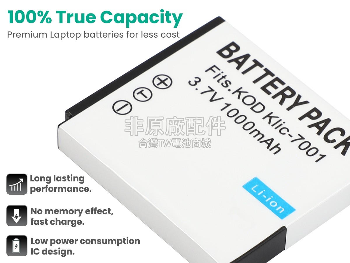 台灣TW電池商城售賣的所有電池均為100%真實容量,我們絕不會在參數上造假。對於製造商提供的每一款電池,我們都會安排技術人員進行參數測試,以確保我們售賣的電池都符合各種認證的要求、100%安全和100%兼容。極少數情況下,電池參數表上的容量會比電池實物圖上的容量低,這是因為我們檢測時發現製造商給出的電池容量偏高,與電池實際容量不符。於是我們會把電池的實際容量準確地填寫在參數表上,讓顧客直接看到電池的真實容量!這款Kodak EASYSHARE M863電池和原廠有什麼區別?