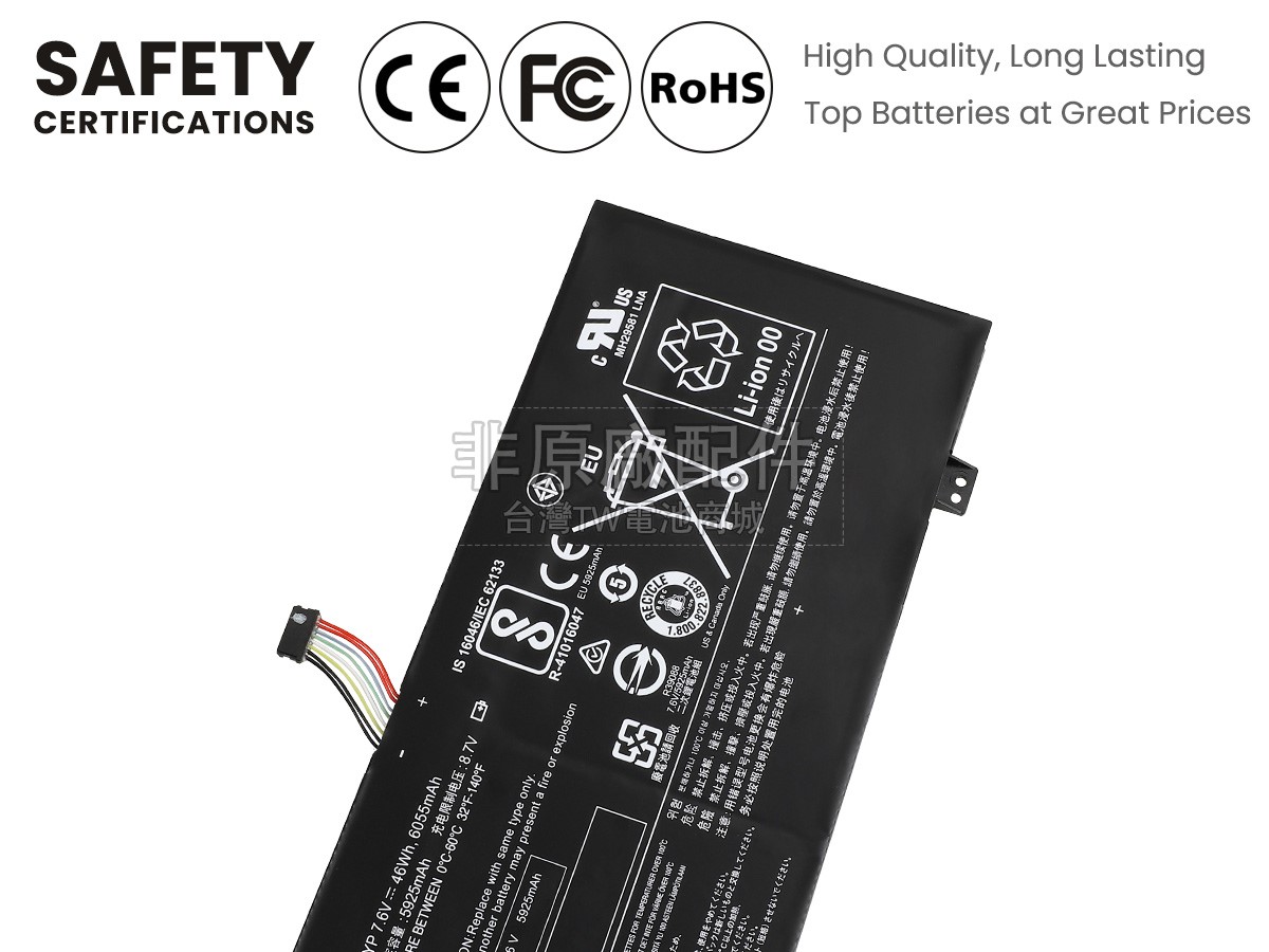 台灣TW電池商城售賣的所有電池均為100%真實容量,我們絕不會在參數上造假。對於製造商提供的每一款電池,我們都會安排技術人員進行參數測試,以確保我們售賣的電池都符合各種認證的要求、100%安全和100%兼容對應的筆記型電腦。極少數情況下,電池參數表上的容量會比電池實物圖上的容量低,這是因為我們檢測時發現製造商給出的電池容量偏高,與電池實際容量不符。於是我們會把電池的實際容量準確地填寫在參數表上,讓顧客直接看到電池的真實容量!這款Lenovo IdeaPad 710S-13IKB-80VQ0060GE電池和原廠有什麼區別?