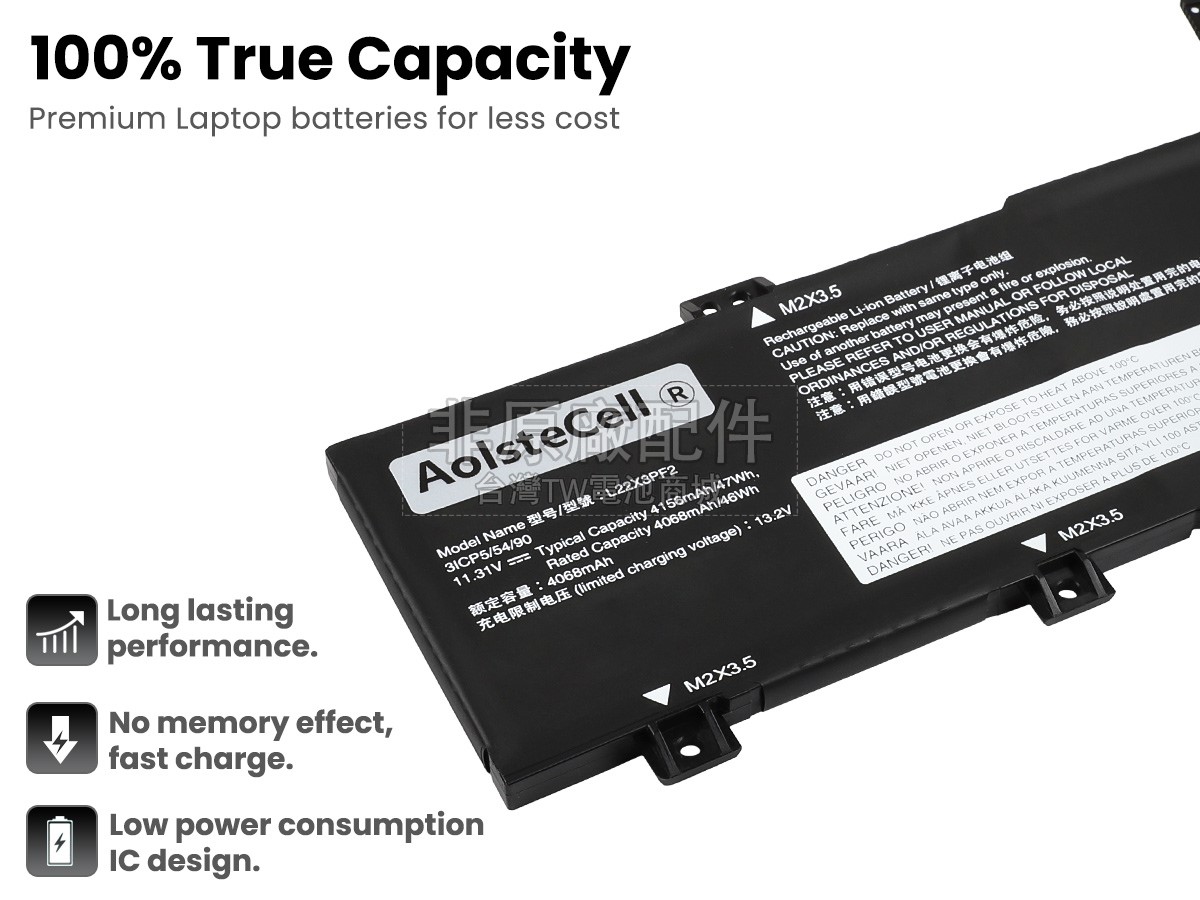 台灣TW電池商城售賣的所有電池均為100%真實容量,我們絕不會在參數上造假。對於製造商提供的每一款電池,我們都會安排技術人員進行參數測試,以確保我們售賣的電池都符合各種認證的要求、100%安全和100%兼容對應的筆記型電腦。極少數情況下,電池參數表上的容量會比電池實物圖上的容量低,這是因為我們檢測時發現製造商給出的電池容量偏高,與電池實際容量不符。於是我們會把電池的實際容量準確地填寫在參數表上,讓顧客直接看到電池的真實容量!這款Lenovo IdeaPad SLIM 3 16IAH8-83ES001EMH電池和原廠有什麼區別?