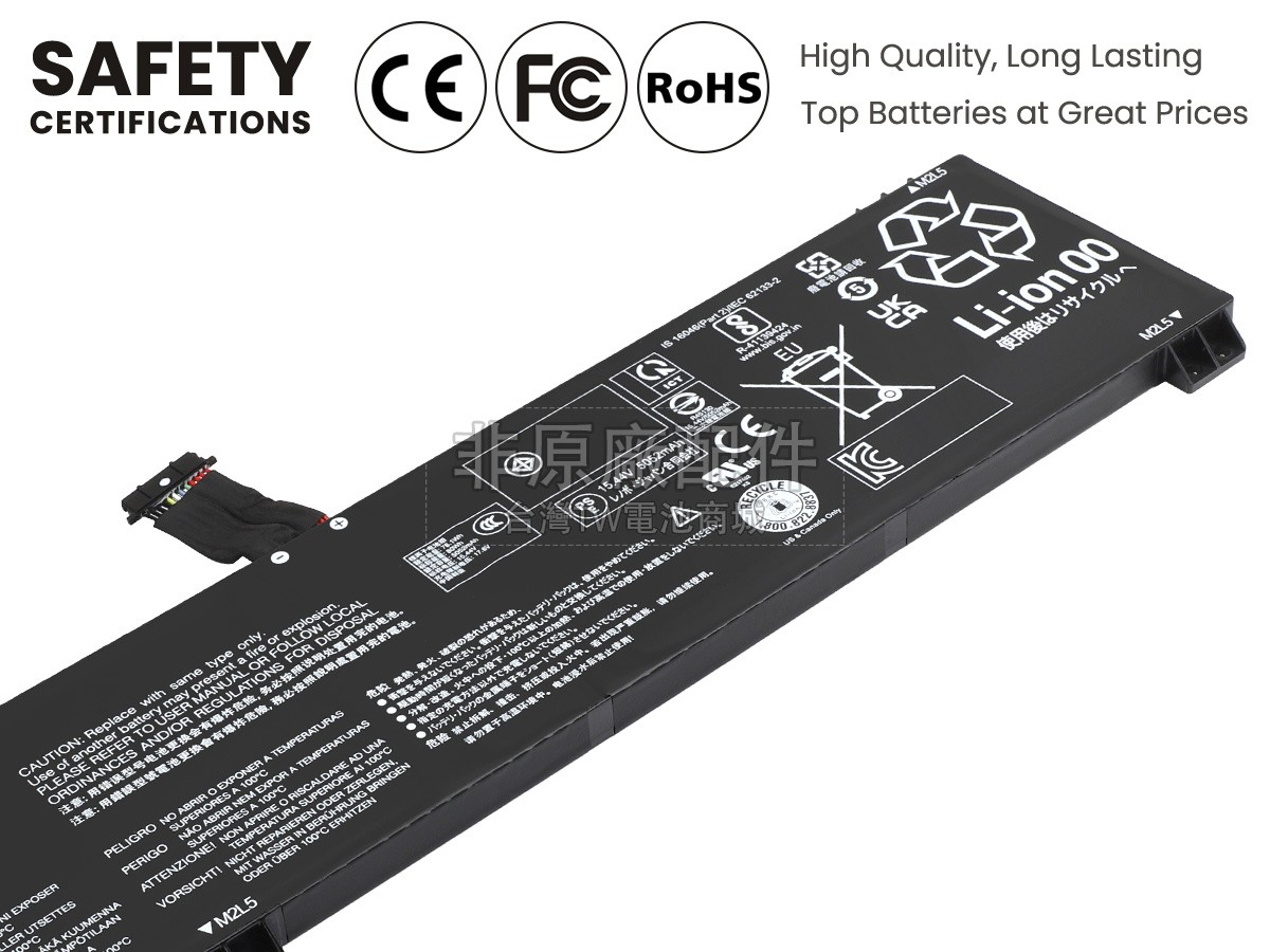 除了使用好的材料外,TW電池商城還以更高的行業標準檢測產品,目前我們的Lenovo LEGION PRO 7 16IRX9H-83DE005VML手提電腦電池已經通過日本PSE強制認證、歐盟RoHS環保認證、CE安全認證、美國FCC認證和MSDS化學品安全認證。