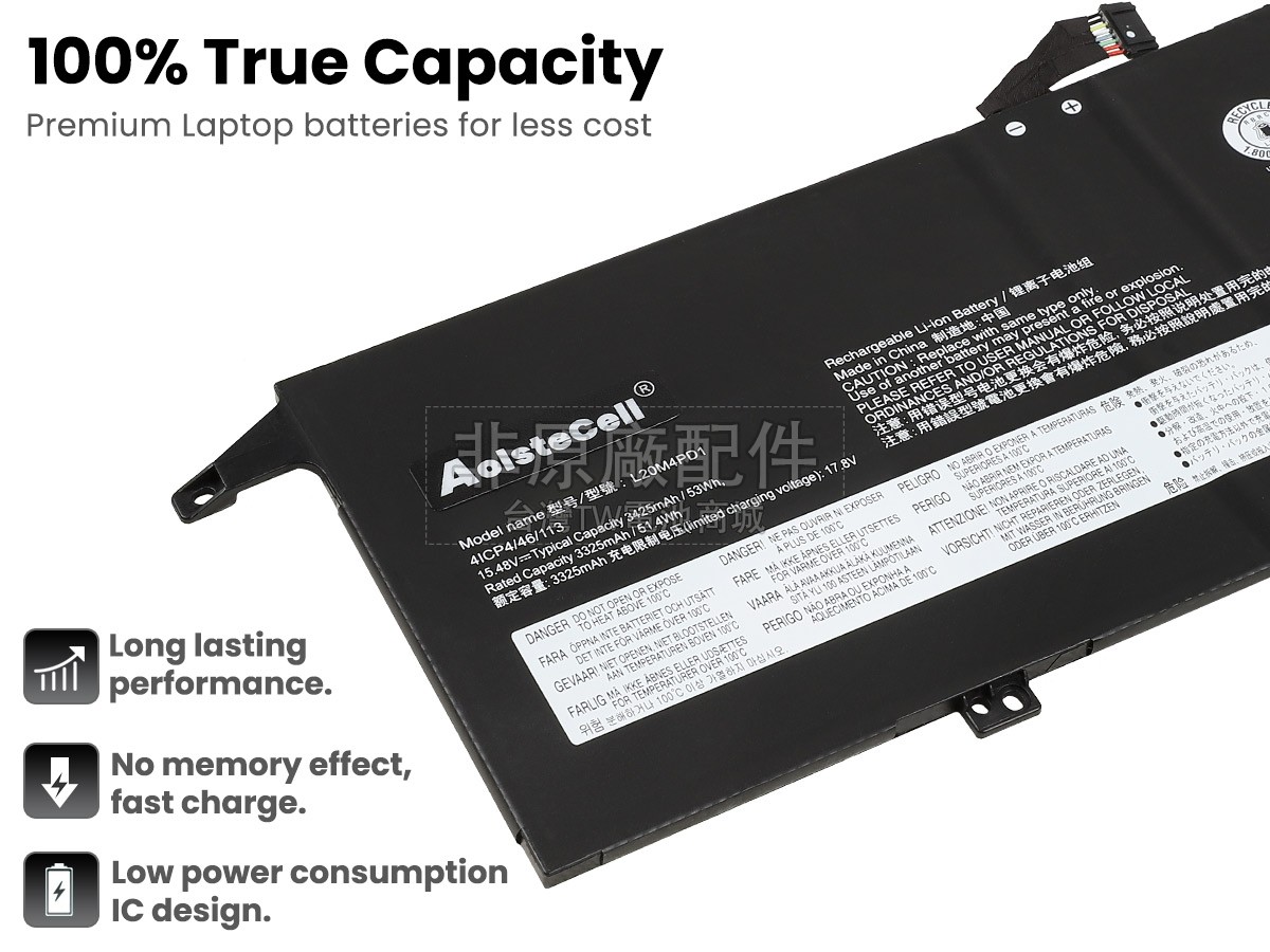 台灣TW電池商城售賣的所有電池均為100%真實容量,我們絕不會在參數上造假。對於製造商提供的每一款電池,我們都會安排技術人員進行參數測試,以確保我們售賣的電池都符合各種認證的要求、100%安全和100%兼容對應的筆記型電腦。極少數情況下,電池參數表上的容量會比電池實物圖上的容量低,這是因為我們檢測時發現製造商給出的電池容量偏高,與電池實際容量不符。於是我們會把電池的實際容量準確地填寫在參數表上,讓顧客直接看到電池的真實容量!這款Lenovo THINKBOOK PLUS G2 ITG-20WH0021UA電池和原廠有什麼區別?