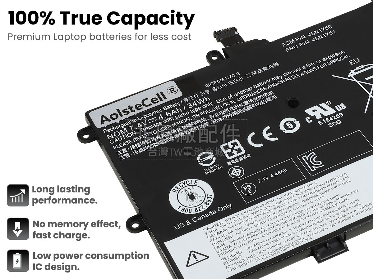 台灣TW電池商城售賣的所有電池均為100%真實容量,我們絕不會在參數上造假。對於製造商提供的每一款電池,我們都會安排技術人員進行參數測試,以確保我們售賣的電池都符合各種認證的要求、100%安全和100%兼容對應的筆記型電腦。極少數情況下,電池參數表上的容量會比電池實物圖上的容量低,這是因為我們檢測時發現製造商給出的電池容量偏高,與電池實際容量不符。於是我們會把電池的實際容量準確地填寫在參數表上,讓顧客直接看到電池的真實容量!這款Lenovo ThinkPad 11E Chromebook-20DB電池和原廠有什麼區別?