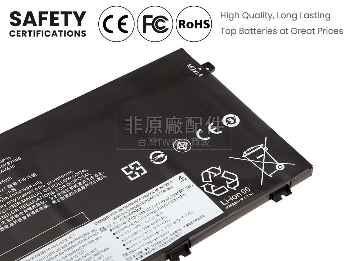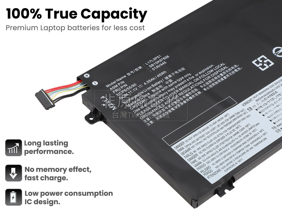 台灣TW電池商城售賣的所有電池均為100%真實容量,我們絕不會在參數上造假。對於製造商提供的每一款電池,我們都會安排技術人員進行參數測試,以確保我們售賣的電池都符合各種認證的要求、100%安全和100%兼容對應的筆記型電腦。極少數情況下,電池參數表上的容量會比電池實物圖上的容量低,這是因為我們檢測時發現製造商給出的電池容量偏高,與電池實際容量不符。於是我們會把電池的實際容量準確地填寫在參數表上,讓顧客直接看到電池的真實容量!這款Lenovo ThinkPad E580-20KS0066MZ電池和原廠有什麼區別?